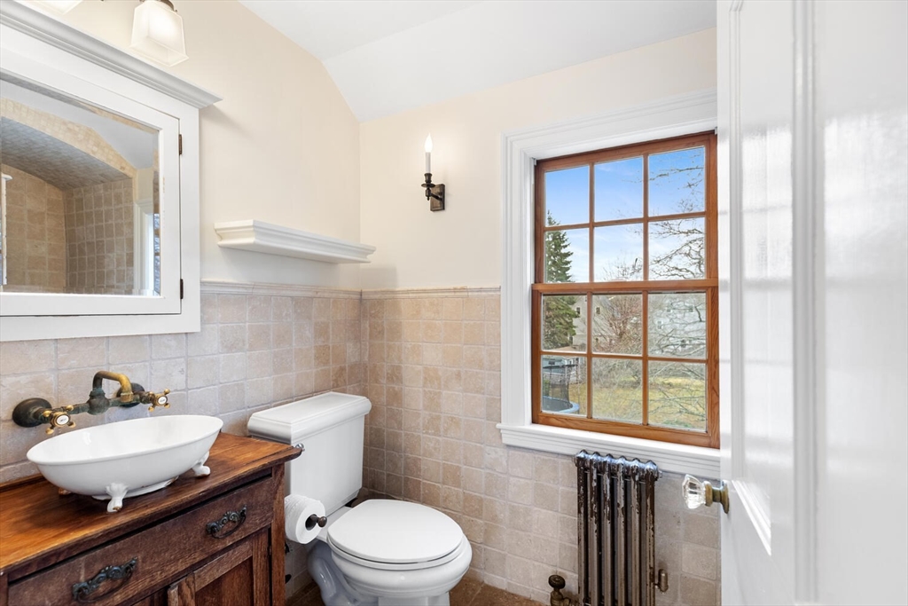 Discerning buyers will appreciate this classic 1938 3-bed 2.5 bath single-family center entrance colonial. 440 Wolcott Street Auburndale, built on a slight rise in a neighborhood of similar gracious homes embodies a timeless appeal. Front entry opens to a formal front to back fireplaced living room. Adjacent sunroom slider door gives direct access to the enormous patio/ yard. Formal dining room, home office, half bath & gorgeous kitchen complete the first floor. Upstairs spacious primary bed w/bath also front to back w/3 closets & charming window seat. Add’l 2 beds, shared family bath, & hall linen closet. Large open finished basement ideal for fun & relaxation. Built-in bar, wine cellar, workout space, laundry, & utility rooms. Gentle sloping yard leads to the basketball court. Steps to shops, restaurants, all that the local villages have to offer. Close to public transport (trains & buses). One-block off Commonwealth Avenue & Lexington Street - easy access to the MA Pike & 128.