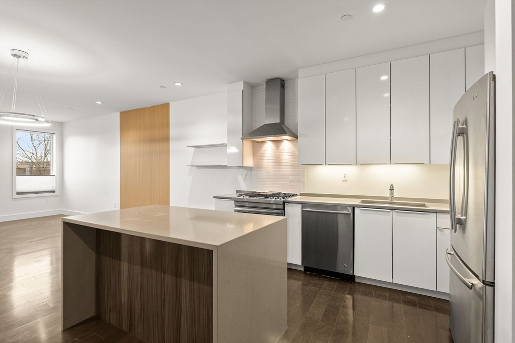 Spacious and stylish 2-bedroom, 1-bath condo featuring an open floor plan and soaring high ceilings. The large kitchen is equipped with a functional island, JennAir appliances and cabinets that extend up to the ceiling; perfect for both everyday living and entertaining. Enjoy the convenience of in-unit washer/dryer, a deeded garage parking space, central AC, and abundant storage throughout. Ideally located on the West side of Southie, just steps from Castle Island Brewing and Shy Bird, with a short walk to the MBTA Red Line. A perfect blend of comfort, convenience, and city living.