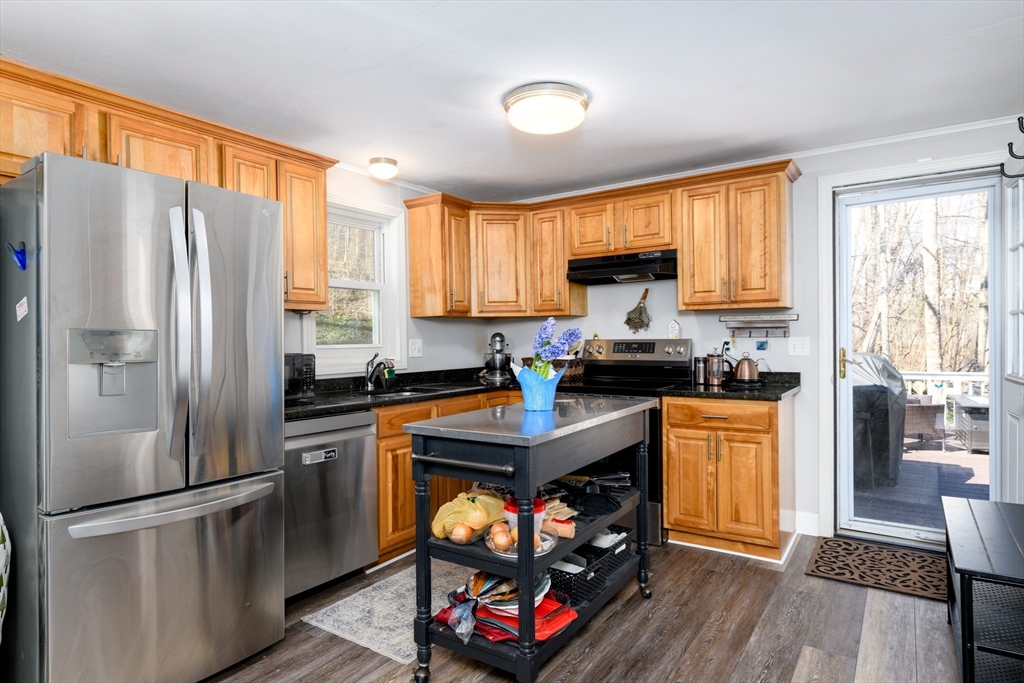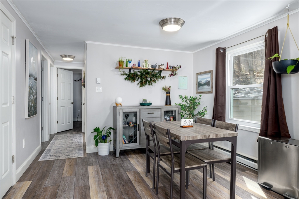 Tucked back from the road in a wooded setting is where this inviting ranch-style home is located. Step inside to discover new plank flooring that flows seamlessly throughout an open, airy floor plan—ideal for both everyday living and entertaining. The spacious kitchen provides a flexible dine-in option, making it easy to gather for daily dining. Front Living room is filled with natural light plus 3 nice size bedrooms and updated bath all recently painted . The fully finished lower level adds valuable living space, perfect for a family room, game room, or home office—tailored to fit your lifestyle needs. Outside space offers a large deck for your seasonal enjoyment plus new shed. Just minutes from the town center, you’ll enjoy easy access to local amenities. A wonderful opportunity for one-level living