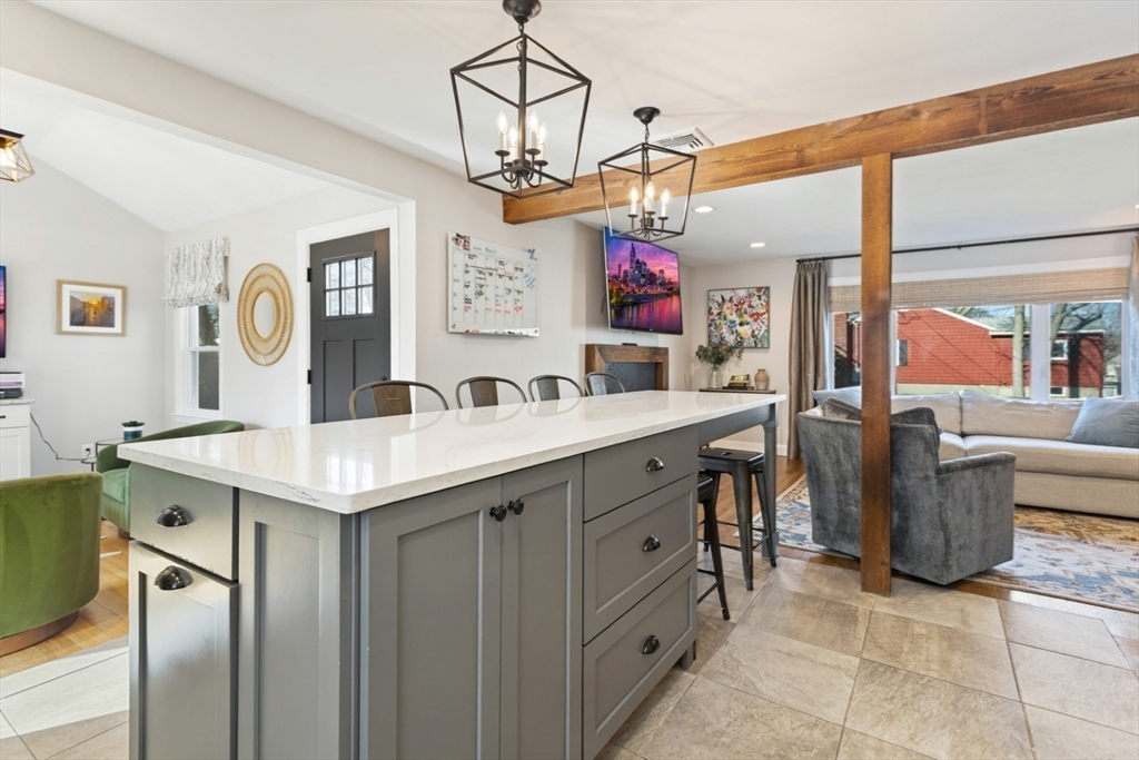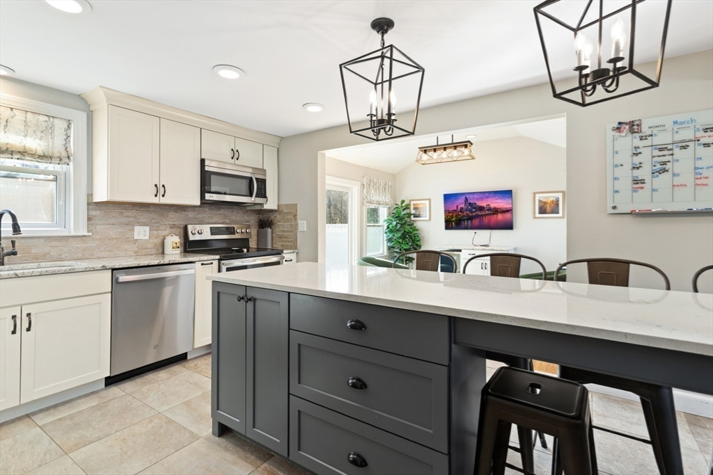 This beautifully updated 3-bedroom, 1.5 bath ranch isn't just move-in ready-it's live your best life ready. Step into a gorgeous open-concept kitchen anchored by an oversized island perfect for breakfast gatherings, and those impromptu conversations that happen while you're prepping dinner. The seamless flow into the fireplaced living room and dining room creates the kind of space where everyone naturally gravitates-whether you're entertaining or just keeping an eye on the game while you cook. The main level delivers with 3 spacious bedrooms and an updated full bath, but there's more. A finished lower level offers additional living space and half bath-ideal for a media room, home gym, or whatever your lifestyle demands. Plus, the 1-car attached garage keeps you out of the elements and adds valuable storage. A generous composite deck overlooks a fully fenced yard complete with pool, sports court, and green space perfect for outdoor activities. Don't miss the chance to call this home!