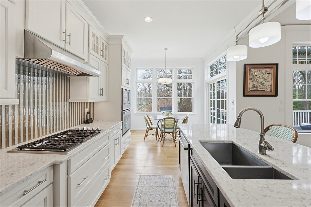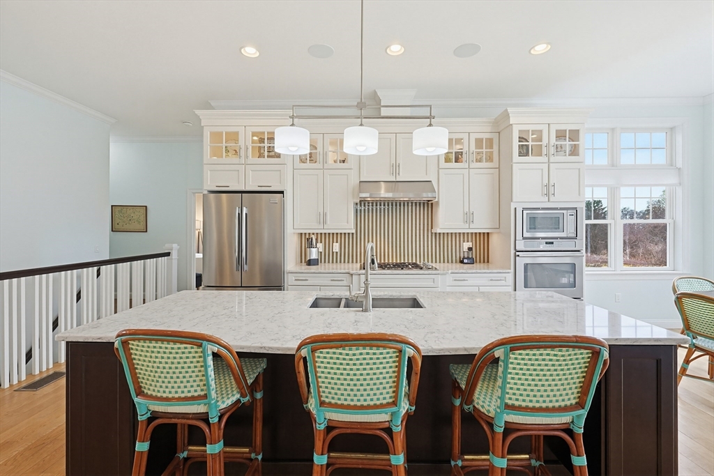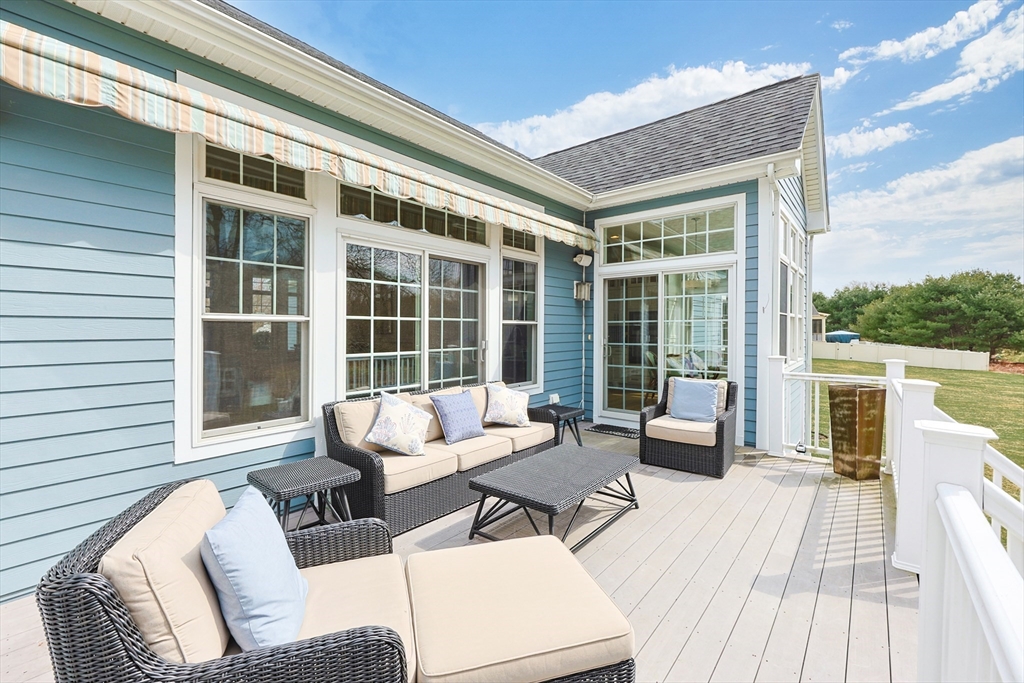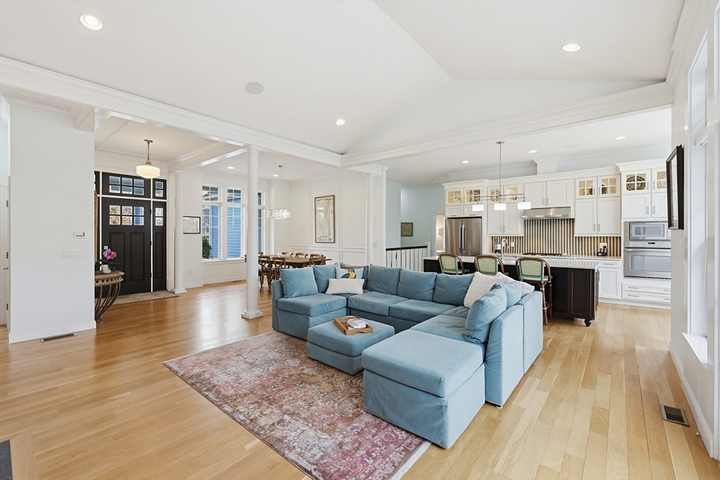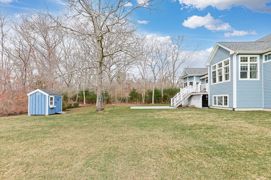 Welcome to this stunning custom-built single level located in the desirable Hampden Cove neighborhood. Offering 4 beds & 2.5 baths, showcasing a bright open layout enhanced by soaring 10ft ceilings, detailed crown molding, hardwoods & decorative columns. The living rm features a dramatic cathedral ceiling & a gas fireplace beautifully framed by custom built-ins. The gourmet kitchen is equally impressive w/ shaker-style cabinetry, glass front accents, marble counters, glass-tile backsplash, 9ft island & stainless steel appliances. The luxurious primary suite is a private retreat w/ an elegant tray ceiling, sitting area w/access to rear deck, walk-in closet, spa bath w/ tiled shower & corner tub. 3 add. bedrms, full bath, a stylish guest 1/2 bath & laundry rm complete the main level. The partially fin. lower offers a bright & spacious family/rec rm & ample unfinished space. Additional highlights incl. Generac whole-house generator w/ auto transfer, irrigation, patio, shed & 2 car garage.