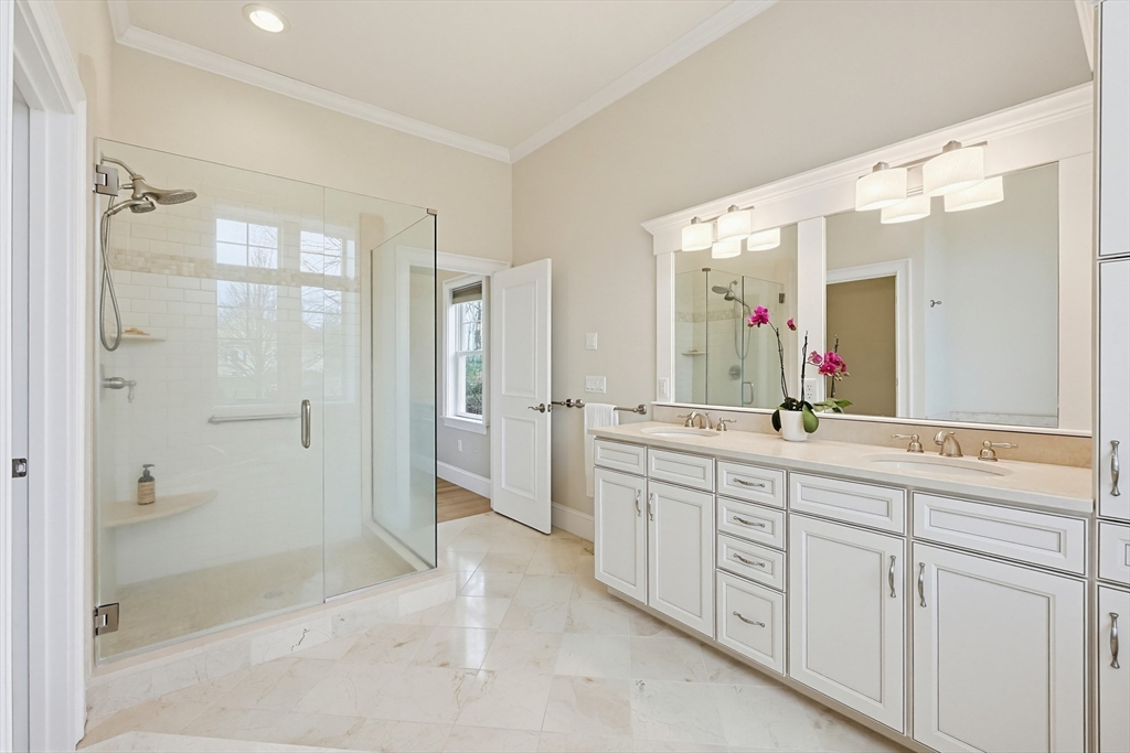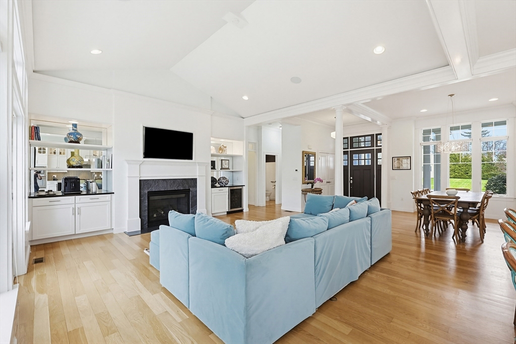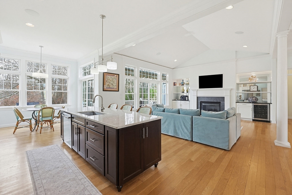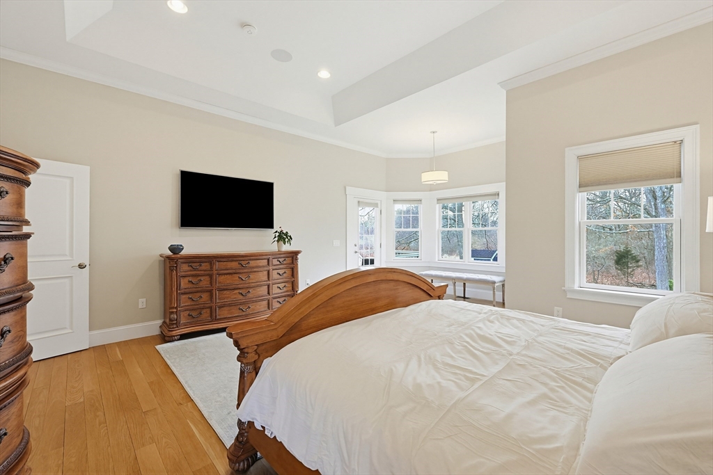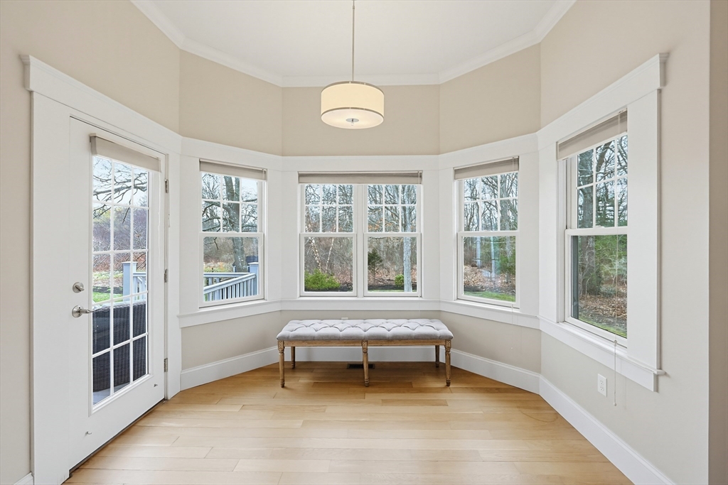 Welcome to this stunning custom-built single level located in the desirable Hampden Cove neighborhood. Offering 4 beds & 2.5 baths, showcasing a bright open layout enhanced by soaring 10ft ceilings, detailed crown molding, hardwoods & decorative columns. The living rm features a dramatic cathedral ceiling & a gas fireplace beautifully framed by custom built-ins. The gourmet kitchen is equally impressive w/ shaker-style cabinetry, glass front accents, marble counters, glass-tile backsplash, 9ft island & stainless steel appliances. The luxurious primary suite is a private retreat w/ an elegant tray ceiling, sitting area w/access to rear deck, walk-in closet, spa bath w/ tiled shower & corner tub. 3 add. bedrms, full bath, a stylish guest 1/2 bath & laundry rm complete the main level. The partially fin. lower offers a bright & spacious family/rec rm & ample unfinished space. Additional highlights incl. Generac whole-house generator w/ auto transfer, irrigation, patio, shed & 2 car garage.