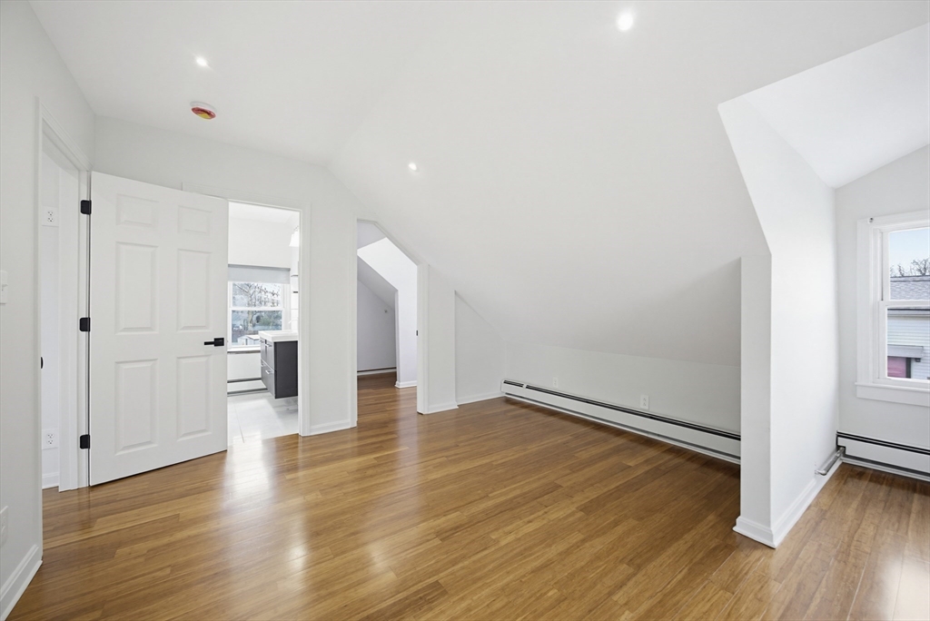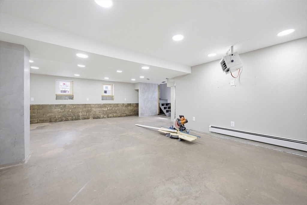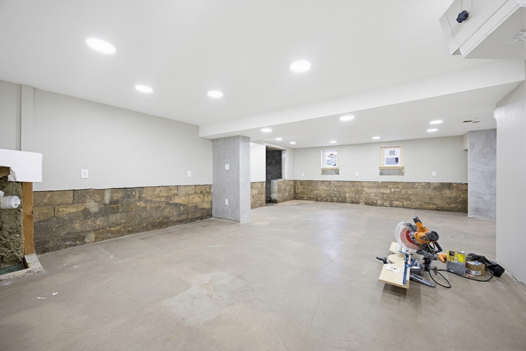 Beautifully updated single-family cape in a prime Medford location! This 3 bedroom, 2 full bath home offers an open and inviting floor plan with hardwood floors throughout and stylish kitchen and bathroom upgrades. The spacious main level features a bright living area, oversized kitchen with island seating, and a first-floor bedroom perfect for guests, office, or flexible living. Upstairs, the primary suite includes a full bath with double vanity and walk-in closet, while the second bedroom offers a deep closet and private balcony. The lower level is already prepped for finishing with heat, a finished ceiling with recessed lighting, and partially finished walls - just add flooring and complete the walls to create an additional ~500 sq ft of living space. Enjoy a large backyard with endless potential, detached garage, and ample off-street parking. Minutes to Assembly Row, Wellington Station, major highways, and an easy commute to Boston by car or public transportation.