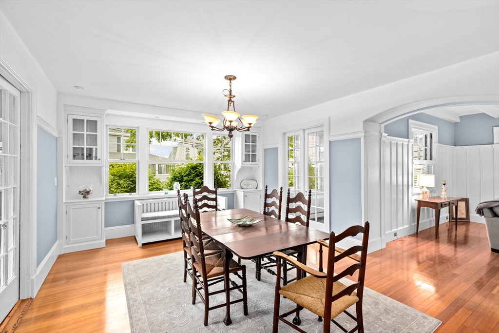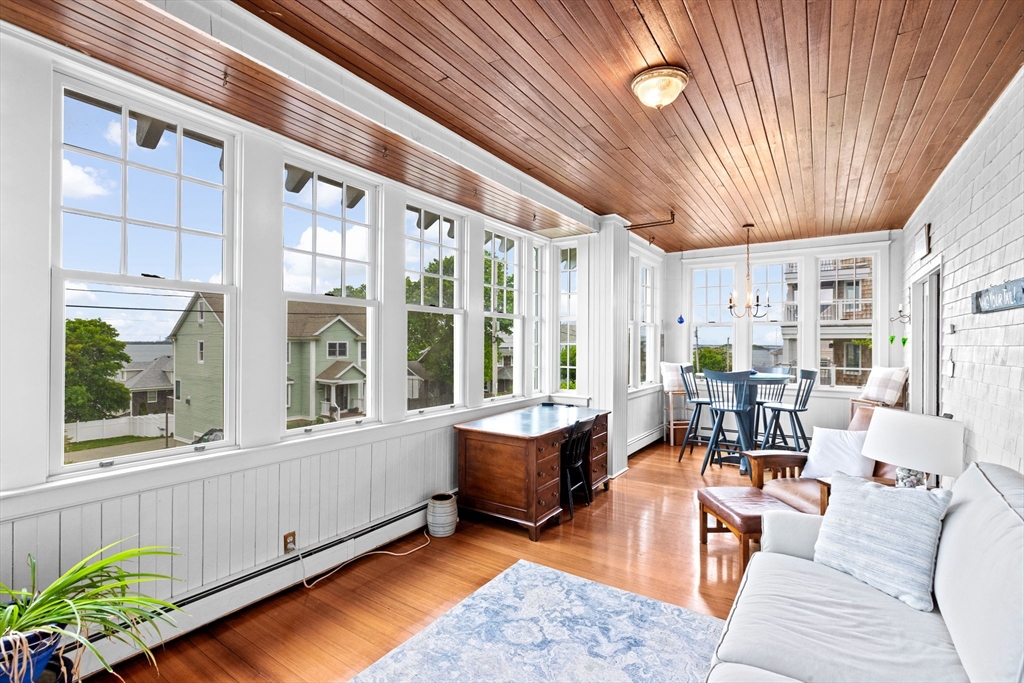 Beautiful home on Allerton Hill offering wonderful water views and timeless charm throughout. This four-bedroom residence features a spacious enclosed wraparound porch—perfect as a game room, family room, or a cozy retreat to relax and watch the boats go by. An oversized dining room with French doors opening to the porch and a charming living room with fireplace create inviting spaces ideal for entertaining. The large primary suite includes a full bath with walk-in shower and separate soaking tub. Three additional guest bedrooms and a full bath provide ample space for family and visitors. Additional highlights include a convenient one-car garage and a lovely yard complete with a hot tub—perfect for unwinding after a day by the water. Ideal as a year-round residence or a perfect summer getaway. Close to Nantasket beach. Conveniently located close to the commuter boat for easy access to the city.