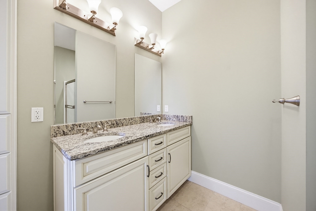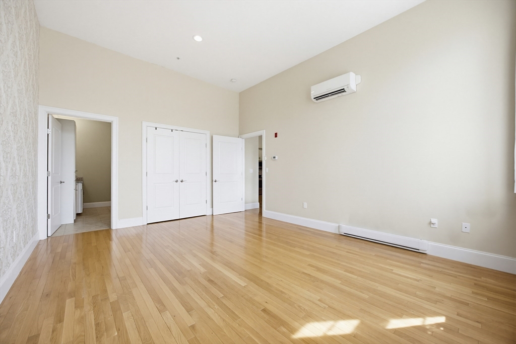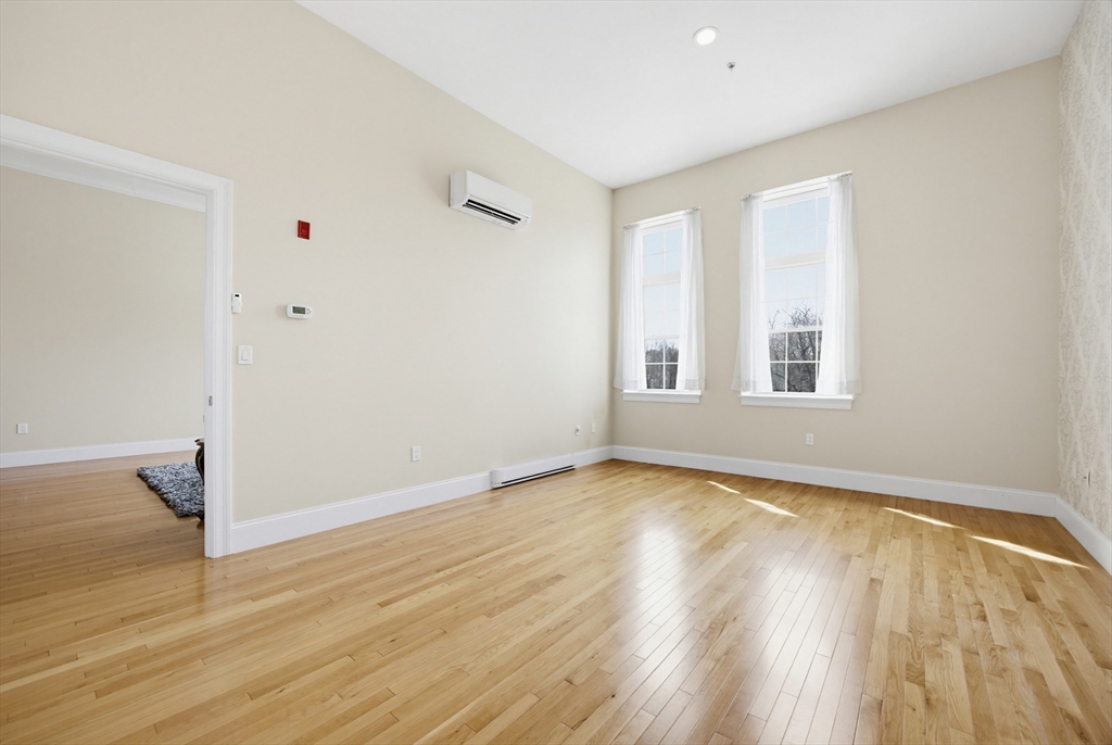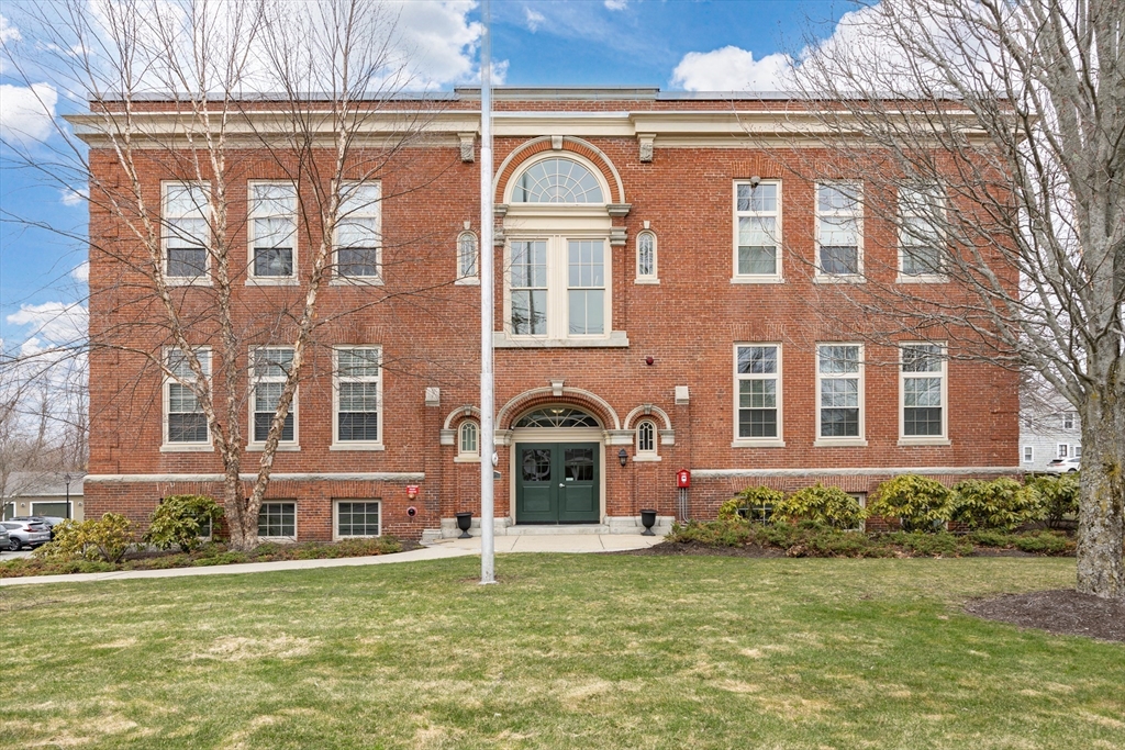 Stunning top floor 1BR at The Franklin Condominiums, a beautifully restored historic school building - completely renovated & converted to luxury condos in 2014. This sun-filled home features an open concept layout with soaring 11 ft ceilings, oversized windows, and hardwood floors throughout. The elegant kitchen offers granite countertops, tiled backsplash, S.S appliances, abundant cabinetry, and peninsula seating for everyday living or entertaining. The spacious living area is filled with natural light and showcases the character and scale that make this building so unique. The oversized bedroom offers generous closet space and a beautifully appointed en-suite bath w/ double vanity and tub/shower combination. Mitsubishi mini-splits provide efficient heating & cooling. Includes large storage unit, beautifully maintained common areas, community patio, and 1 deeded garage parking space. Conveniently located just 1 mile to the Wakefield MBTA commuter rail and scenic Lake Quannapowitt.