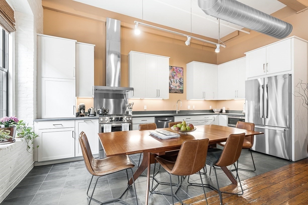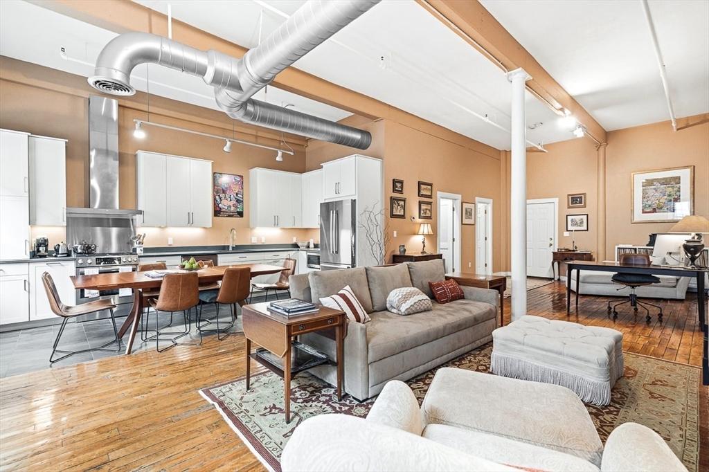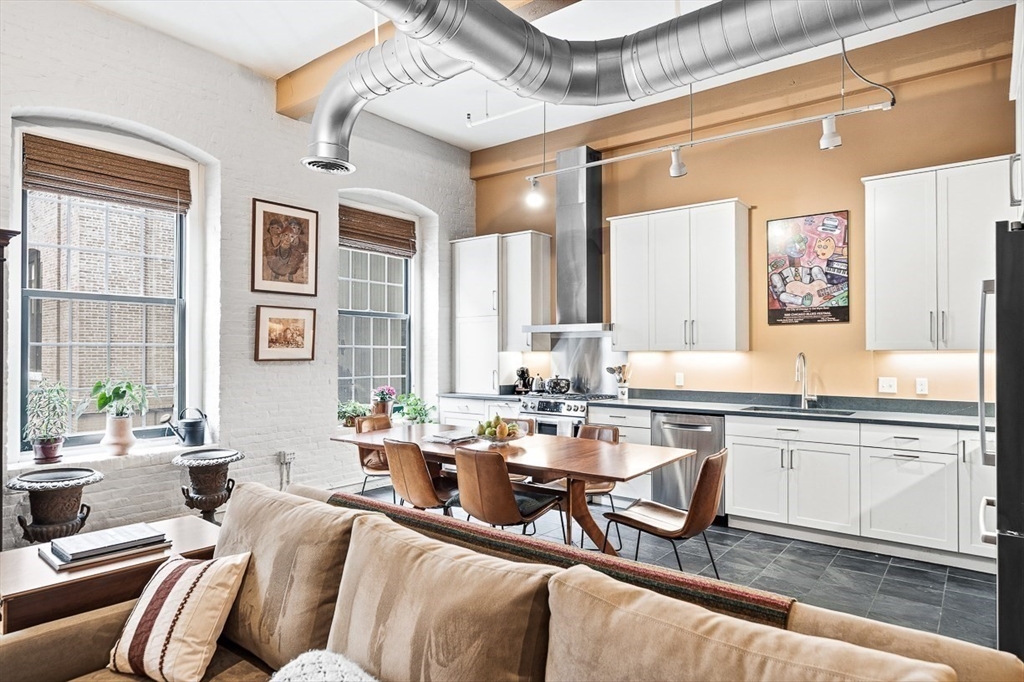 At the intersection of the Charles River & Downtown Waltham, is a 1870's textile factory building that was converted to condos in 2005. Experience industrial heritage & modern luxury in this stunning 1 bedroom loft unit. It offers a unique sense of scale with 12-foot ceilings & 7 magnificent 6-foot windows. The main room includes space for dining, kitchen & options for flexible living. The bedroom is spacious & features an oversized walk-in-closet. Maple factory floors are uniquely beautiful. The unit was reimagined with a new kitchen & bathroom in 2021. The chef’s kitchen has a wall of extra tall cabinets, Bosch appliances, Italian tile, & leathered Silestone counters. The bathroom features a custom bamboo vanity, walk-in shower & towel warmer. Beyond the interior’s quiet elegance, the lifestyle is unparalleled. Just steps from the Charles River Greenway & renowned restaurants. Deeded parking, private storage, & easy access to the local colleges, Commuter Rail, I-95, & the Mass Pike.