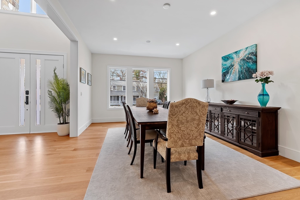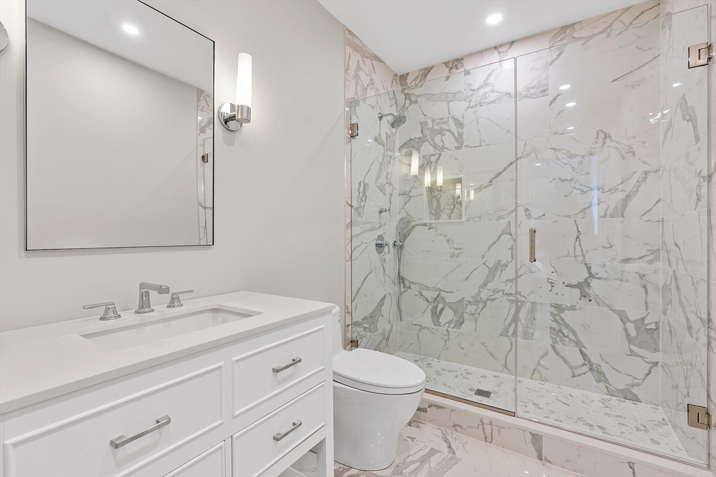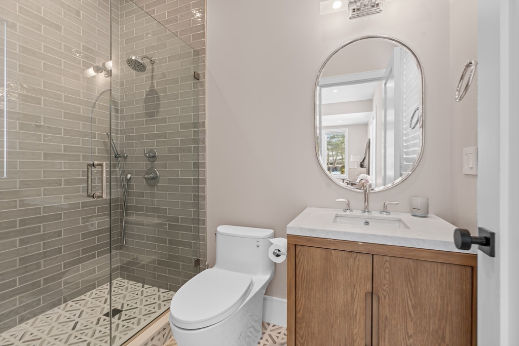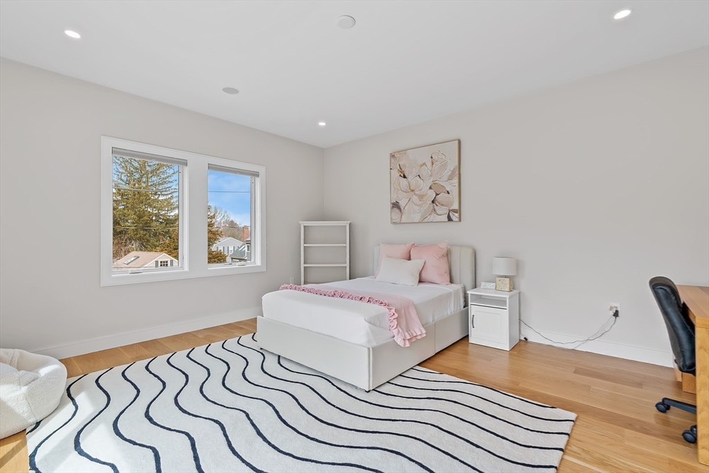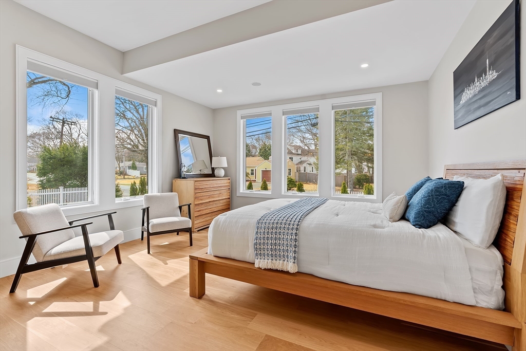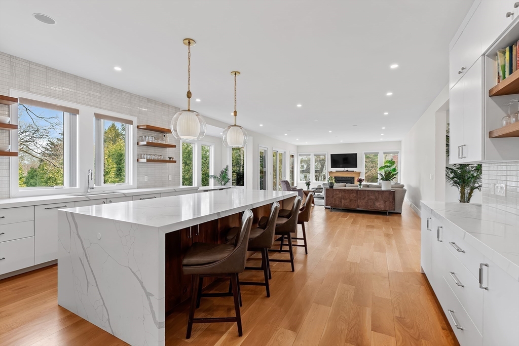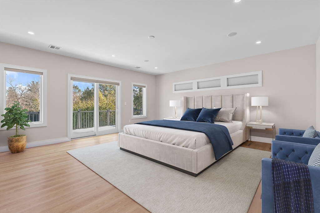Custom designed contemporary residence offering refined luxury in one of Needham's most desirable neighborhoods. This architecturally striking home showcases exceptional craftsmanship, elevated finishes, and thoughtfully designed living spaces for today's lifestyle. A dramatic nearly 20-foot sunlit foyer opens to expansive living & entertaining areas, including a sophisticated family room & a chef's kitchen appointed w Thermador and Fisher & Paykel appliances, quartz surfaces, a generous island w seating for 5, dual dishwashers, refrigerator drawers, & wine fridge. All bedrooms are en-suite, including a luxurious primary suite w a private rear-facing balcony. The spa-inspired primary bath offers radiant heated floors, steam shower & soaking tub. The fully finished lower level is completed to perfection & features a private home gym, elegant au-pair suite, spacious bonus/media room, dedicated office, & a separate entrance. 2-car garage with EV Charger.