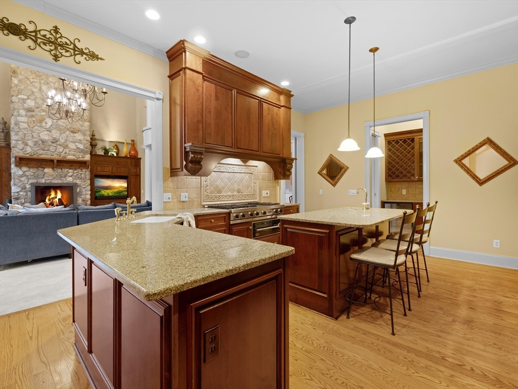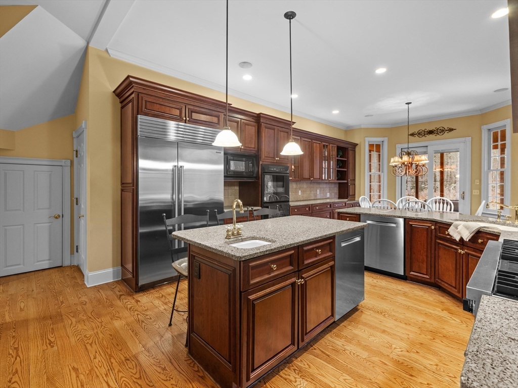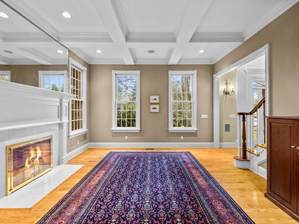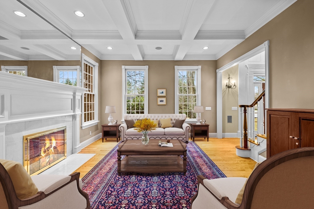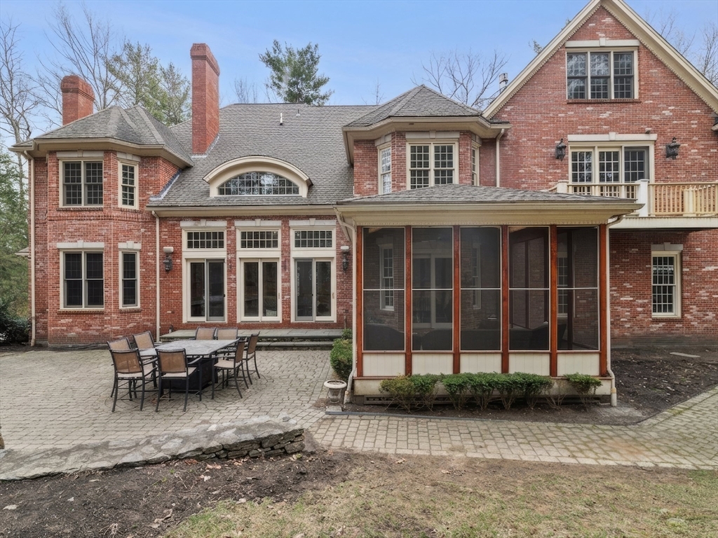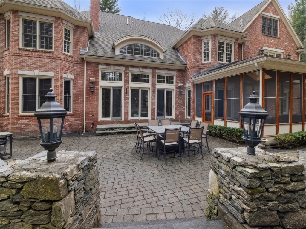 Nestled off the road amongst mature trees and stone walls sits this stately brick colonial. This custom home features a fantastic, functional floorplan. As you enter the 2 story foyer you are greeted with gleaming hardwoods and an open floor plan. A large 2 story family room features a floor to ceiling stone fireplace and a wall of French doors, bringing the outside in and allowing extensive natural light. This is carried into the large chefs kitchen with high end appliances, custom cabinetry, ample counter space and a butlers pantry which seamlessly connects with the dining room; perfect for entertaining. A fireplaced living room, sunroom and wood paneled fireplaced office with endless built ins flank the far end of the home. The 2nd floor features a massive primary suite with gas fireplace and a balcony overlooking the private wooded rear yard. 4 more generous sized bedrooms and a second floor laundry complete the 2nd floor. The 3rd floor features a game and media room and full bath.