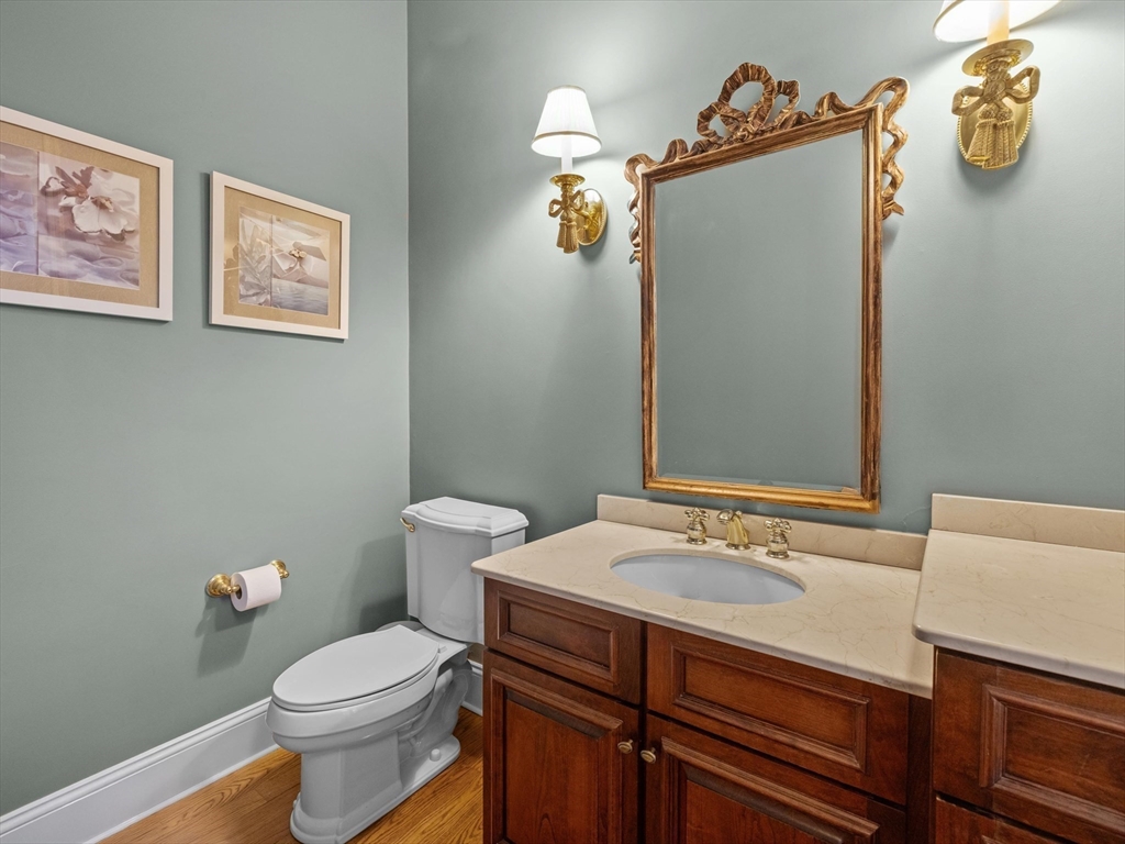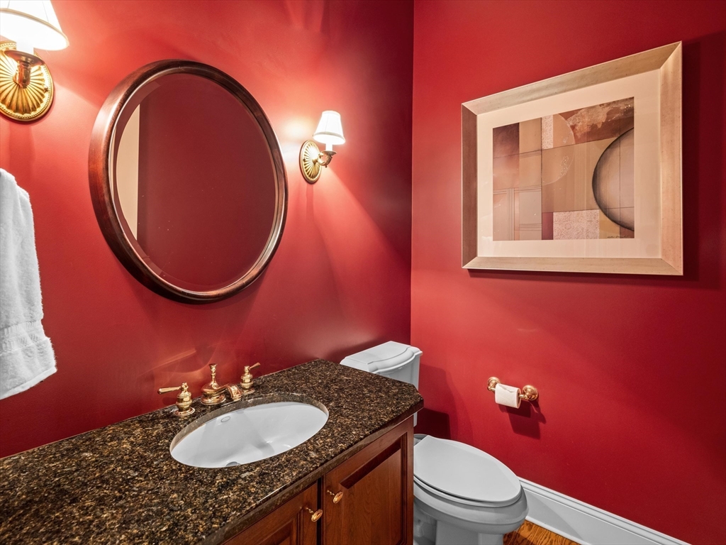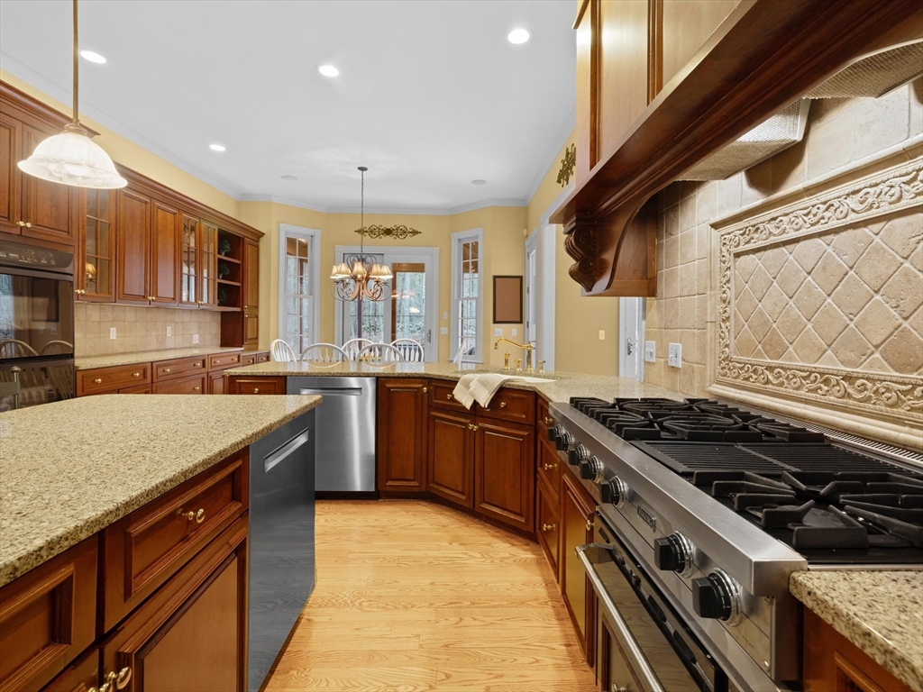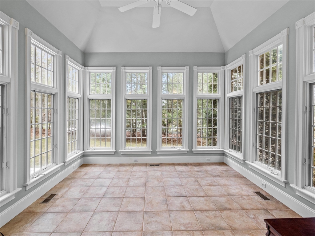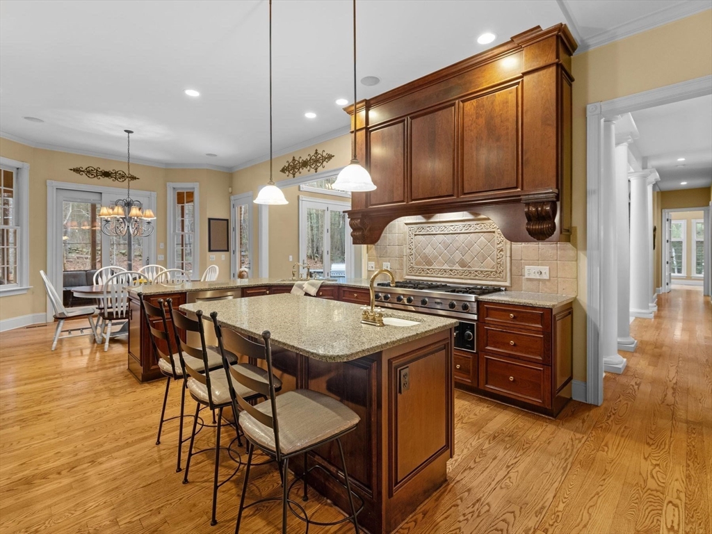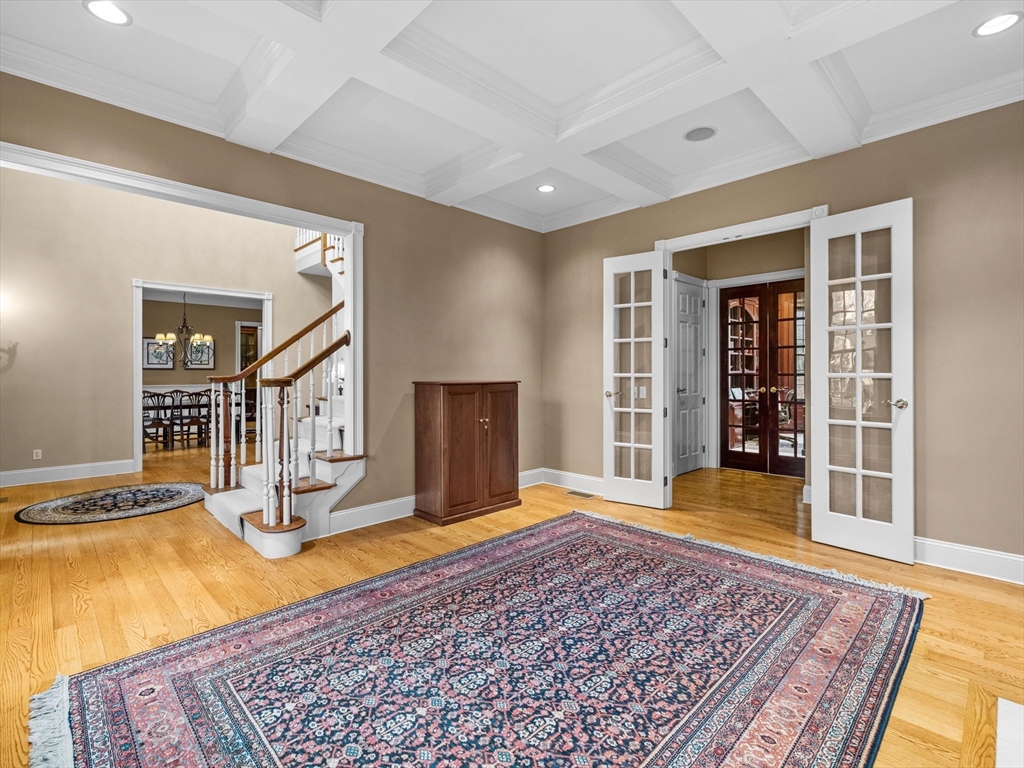 Nestled off the road amongst mature trees and stone walls sits this stately brick colonial. This custom home features a fantastic, functional floorplan. As you enter the 2 story foyer you are greeted with gleaming hardwoods and an open floor plan. A large 2 story family room features a floor to ceiling stone fireplace and a wall of French doors, bringing the outside in and allowing extensive natural light. This is carried into the large chefs kitchen with high end appliances, custom cabinetry, ample counter space and a butlers pantry which seamlessly connects with the dining room; perfect for entertaining. A fireplaced living room, sunroom and wood paneled fireplaced office with endless built ins flank the far end of the home. The 2nd floor features a massive primary suite with gas fireplace and a balcony overlooking the private wooded rear yard. 4 more generous sized bedrooms and a second floor laundry complete the 2nd floor. The 3rd floor features a game and media room and full bath.