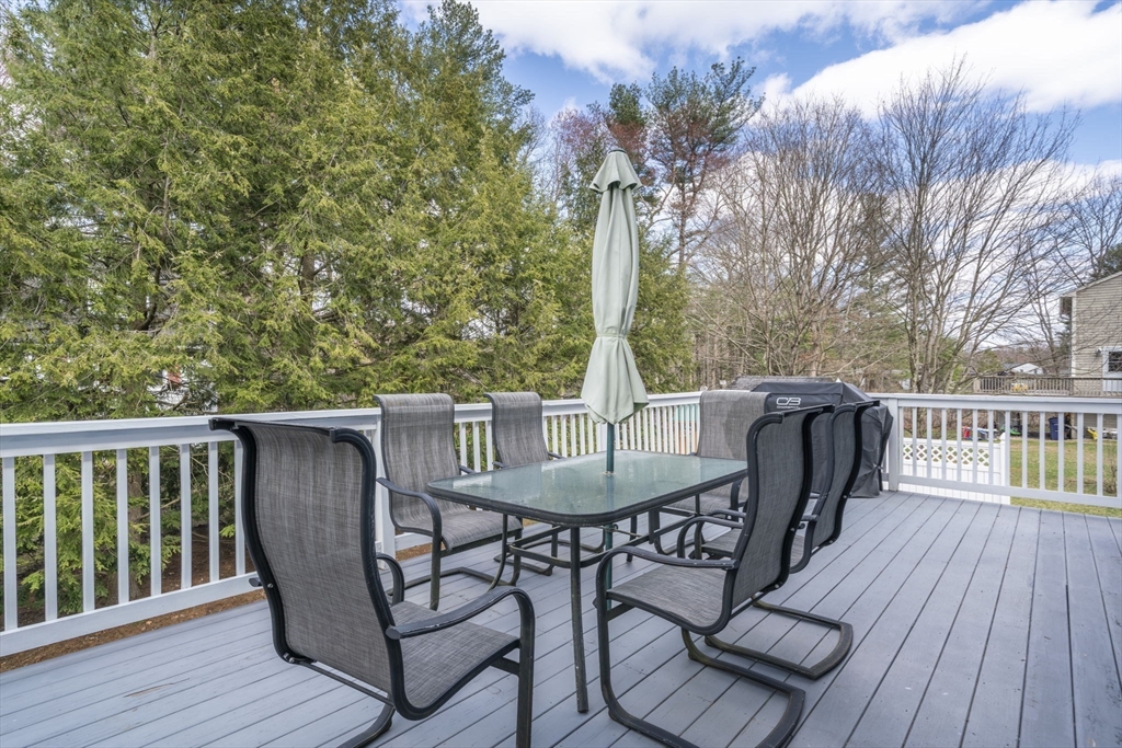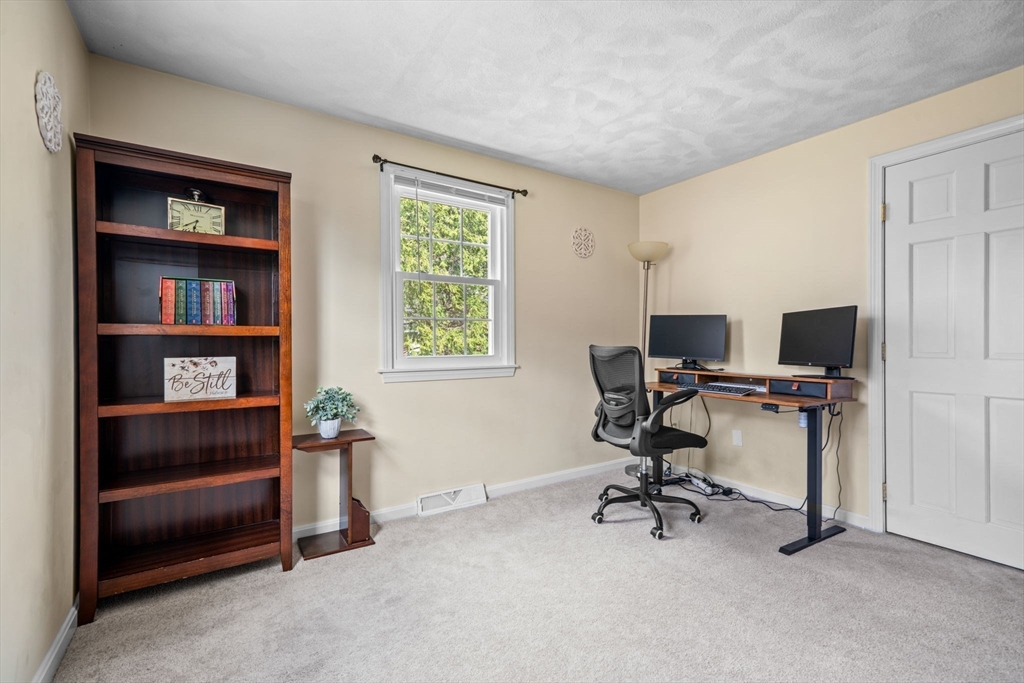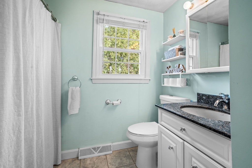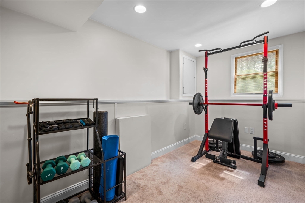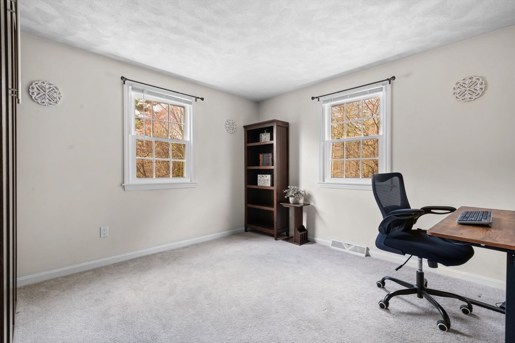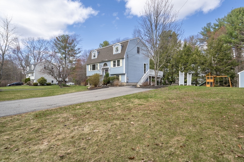Beautifully maintained Gambrel-style home on a quiet dead-end street! This 4-bed, 2 full bath home offers three finished levels of living with brand new windows throughout. The sun-filled kitchen with peninsula opens to the dining area, perfect for entertaining. The first floor includes a cozy living room, office/fourth bedroom, and full bath. Upstairs features three spacious bedrooms and a large full bath with walk-in shower.The finished lower level offers a renovated family room with recessed lighting, great natural light, and walk-out access to the backyard, plus a bonus room ideal for an office, gym, or playroom. Step outside to a beautifully landscaped yard with a stone patio and updated irrigation system, perfect for relaxing evenings or weekend gatherings. Ideally located near the Commuter Rail, library, parks, pickleball/basketball courts, and the shops and restaurants along Main Street. A warm and inviting home that blends comfort, functionality, and lifestyle. Don't miss out!