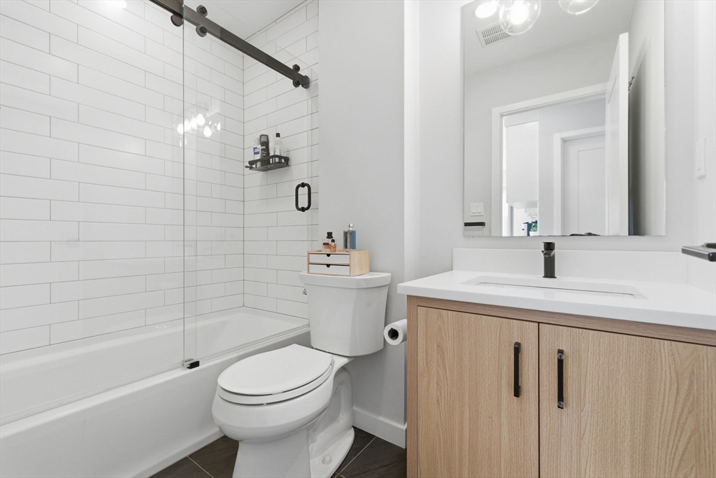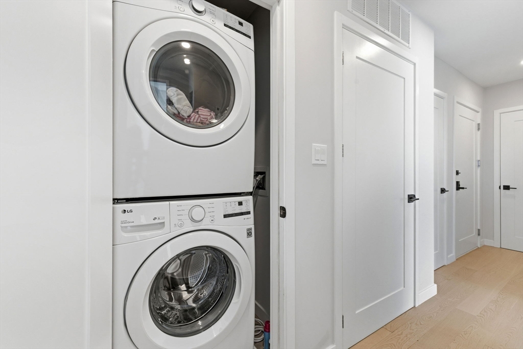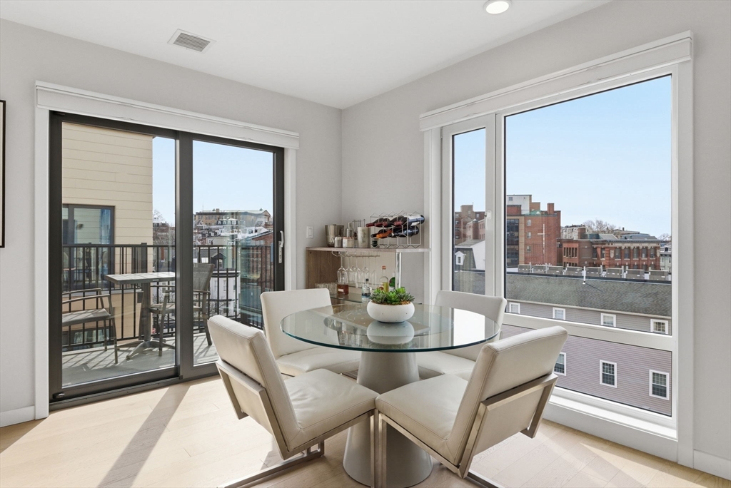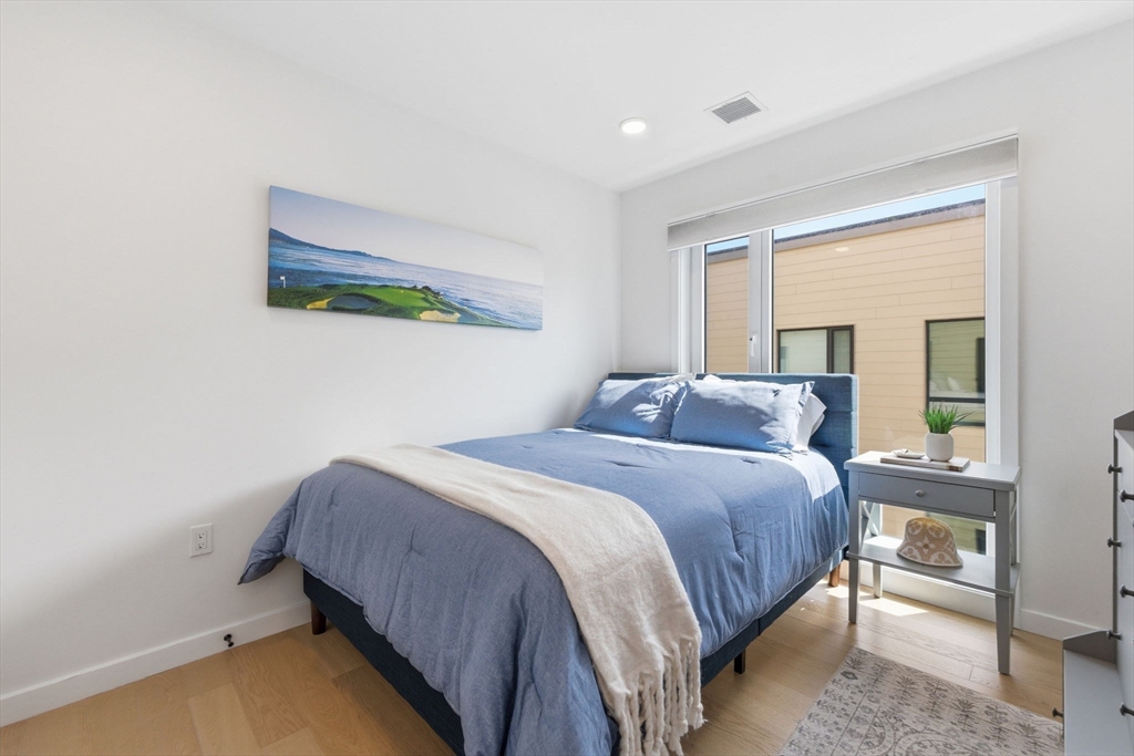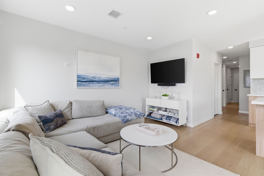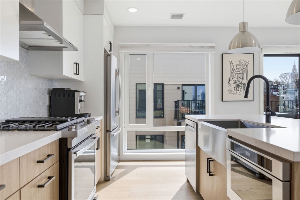 Penthouse 2 bed, 1 bath residence with garage parking, and roof deck at The Blake South Boston, a boutique 44 unit luxury building completed in 2022. This home features a private deck and sweeping Boston skyline views from the living area. Thoughtfully designed with oversized windows, light oak flooring, JennAir appliances, quartz countertops, and a geometric tile backsplash. Residents enjoy premium amenities including a fitness center and a landscaped roof deck with grills, dining, lounge areas, and a dedicated pet space. Ideally located at the corner of West and East Broadway, just moments from Lincoln, Capo, Loco, Ana’s, Playa Bowl, the Broadway MBTA Station and Carson Beach.
