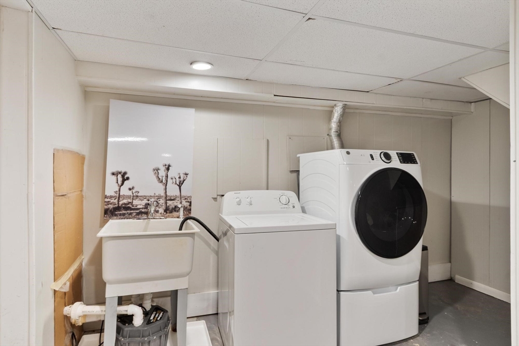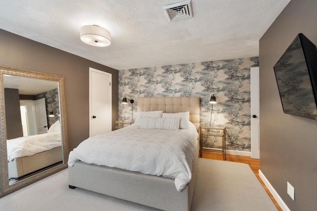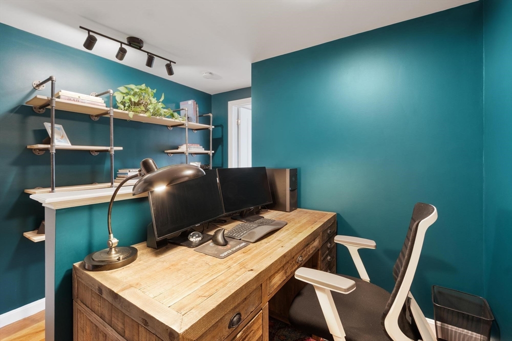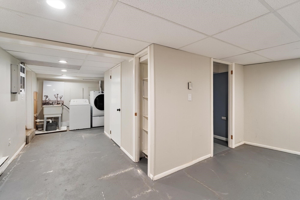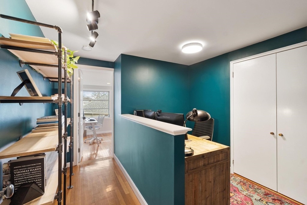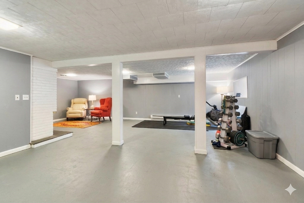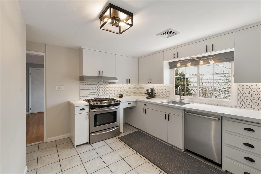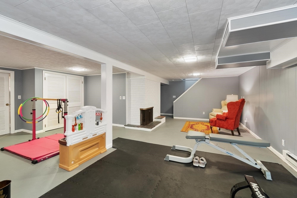 An inviting 8-room ranch offering single-level living in a prime Swampscott location. Enjoy a lifestyle that balances convenience, connection, and everyday ease.The main level features a spacious living/dining area with hardwood floors and a wood-burning fireplace, plus a kitchen with stainless steel appliances and gas cooking. A heated mudroom off the kitchen provides direct access to the deck and pretty yard. Three bedrooms include a primary suite with updated bath, plus home office space. The full basement offers a finished playroom with a second fireplace, laundry, and exceptional storage. Bonus--Central air and gas heat. Attached garage. Fenced yard. Imagine mornings by the coast, afternoons in nearby parks, and an easy commute—leave the car at home for schools, beaches, and the train. A lifestyle that balances convenience and ease.