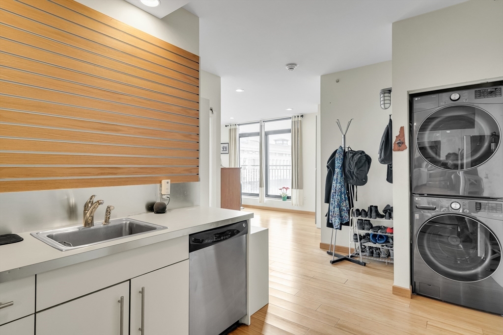 This spacious 1-bed/1-bath condominium is nestled within the historic American Brewery Lofts at the foot of Mission Hill, where character and comfort meet. A desirable corner unit, it is filled with natural light thanks to oversized south-facing windows in the living room, offering sweeping views of the streetscape below. The well-proportioned layout creates an open, airy flow between the living area and bedroom, making the space feel even larger than its footprint. The kitchen offers generous countertop and cabinet space suited for both everyday meals and more ambitious cooking. With an in-unit heat pump for year-round climate control, elevator access, garage parking, private storage, in unit washer/dryer, a fitness center, a garden patio with grills, and guest parking, this residence delivers elevated urban living with real convenience—just moments from Longwood Medical Area, Brookline Village, Jamaica Pond, and the vibrant heart of Jamaica Plain.