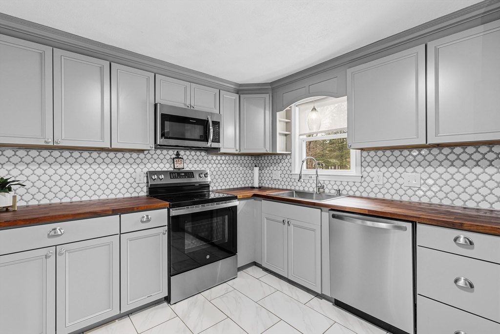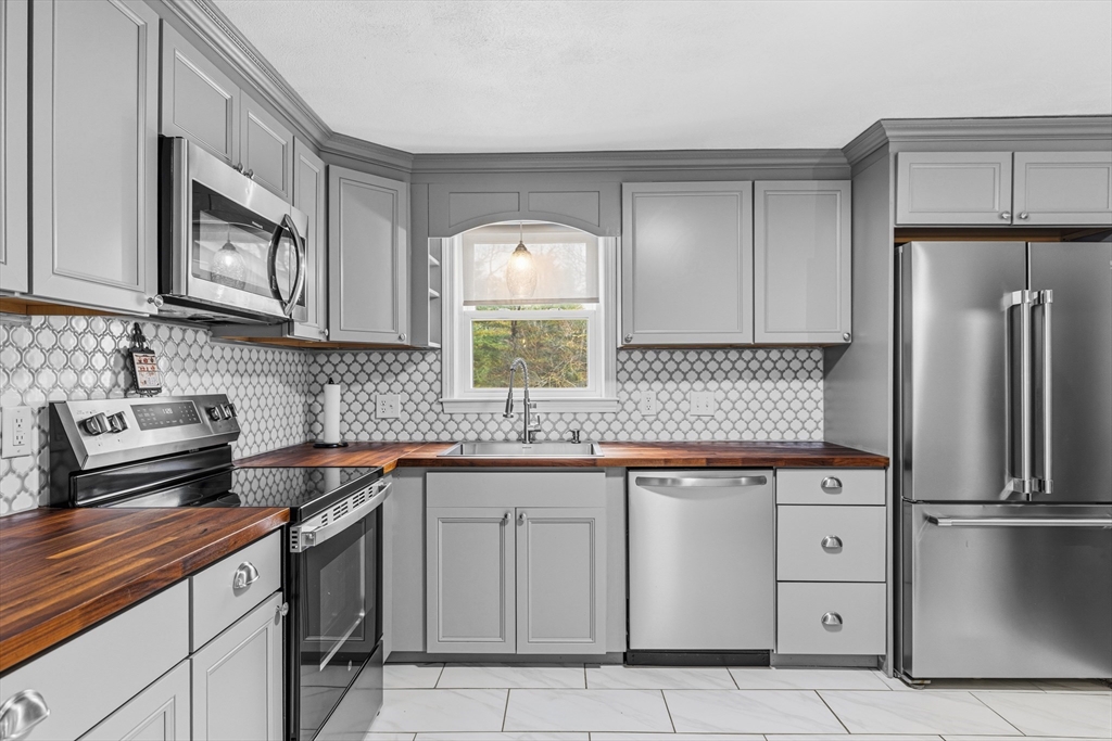 Excellent West Plymouth Location! This beautifully renovated home blends modern updates with warm, inviting spaces, all set on just over a ½ acre. Featuring 3 bedrooms and 1.5 baths, this property offers flexibility for today’s lifestyle. The updated kitchen showcases stylish shaker cabinetry, butcher block countertops, tiled backsplash, stainless steel appliances, and a charming breakfast nook perfect for morning coffee. Tasteful finishes continue throughout the home, creating a cohesive and move in ready feel. The lower level expands your living space with a cozy den complete with a fireplace ideal for entertaining or relaxing as well as a spacious bonus room with a closet, offering great potential for a guest space, playroom, or additional workspace. Outside, enjoy the expansive yard along with an oversized detached 2 car garage, currently set up as a home gym perfect for hobbies, fitness, or storage. A wonderful opportunity to own a thoughtfully updated home in West Plymouth!