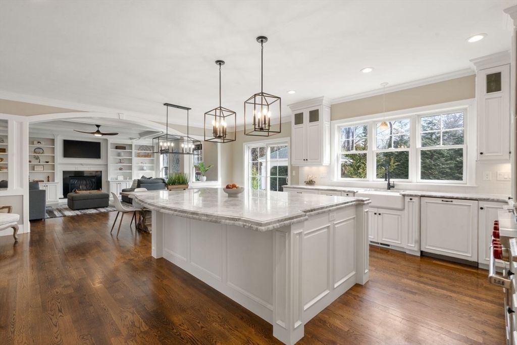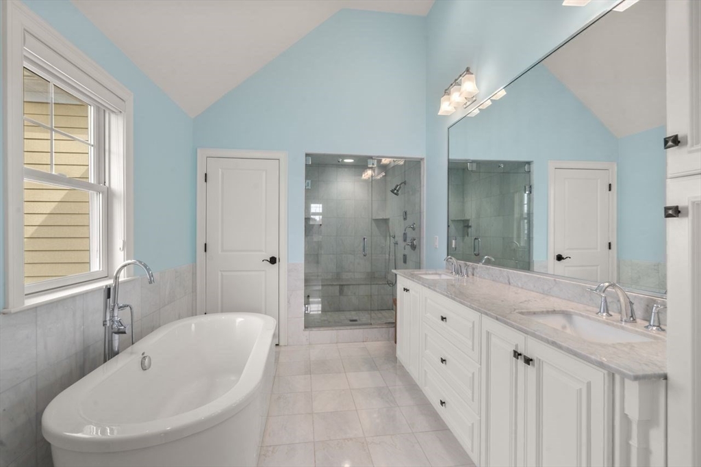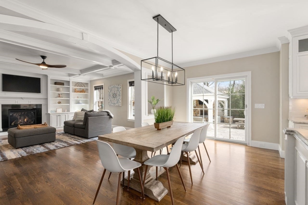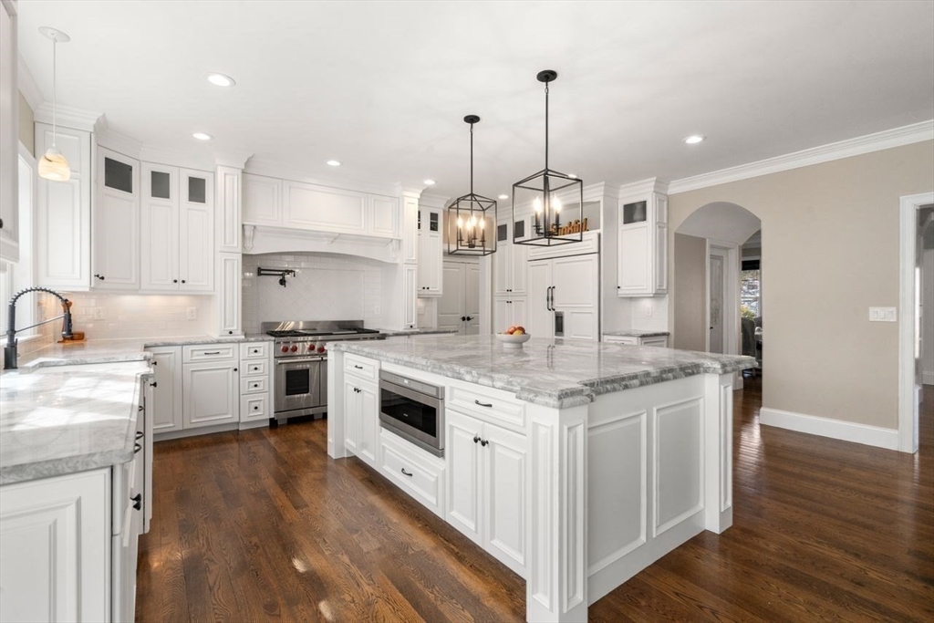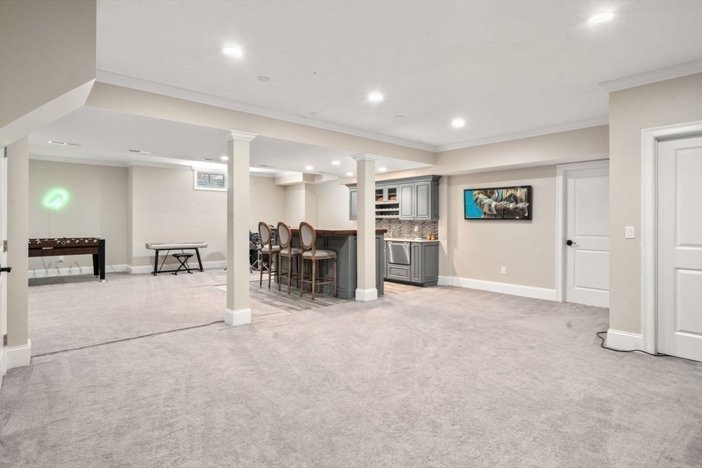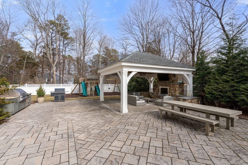 A must-see, beautifully designed custom Colonial with detailed millwork and gleaming hardwood floors throughout. The main level offers a formal living room/study, dining room, walk-in pantry, mudroom and half bath. The gourmet kitchen showcases high-end appliances and an 8ft island, flowing seamlessly into a sunlit breakfast area and family room with coffered ceilings, built-ins, and gas fireplace. Upstairs, the primary suite highlights a cathedral ceiling, walk-in closet, and en suite bath with double vanity, walk-in shower and tub. Four additional bedrooms, including two with private baths, a full bath and laundry room complete the upper level. The finished third level provides flexible bonus space and basement offers recreation area, gym, full bath, and access to the 3-car garage. Set on a beautifully landscaped corner lot, complete with covered pavilion and patio for year-round outdoor enjoyment. This is the home you’ve been looking for, offering everything you need and more!