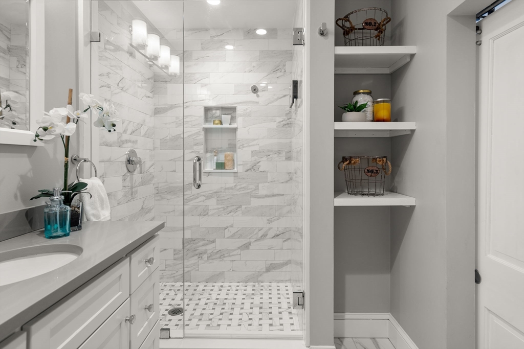 Beautifully updated 3-bedroom, 2-bathroom condo in prime Brookline Village location! Thoughtfully reimagined by the current owners, this condo offers a sophisticated blend of modern amenities and traditional architectural character. The open layout kitchen, dining area, and living room serve as the heart of the home. The gourmet kitchen offers kitchen island, quartz counters, ample cabinetry, stainless steel appliances, and large south-facing windows. Large primary bedroom with fireplace, plus two additional bedrooms. Gorgeous new bathroom with walk-in shower and glass enclosure, plus second bathroom with tub/shower. In-unit laundry, high ceilings, exposed brick, private storage in basement, common outdoor patio area. Pet-friendly association. With a WalkScore of 95 and BikeScore of 98, this condo is conveniently located near the shops/restaurants of bustling Brookline Village, schools, several parks, Olmstead’s Emerald Necklace, the Green “D” line train, and Longwood Medical area.