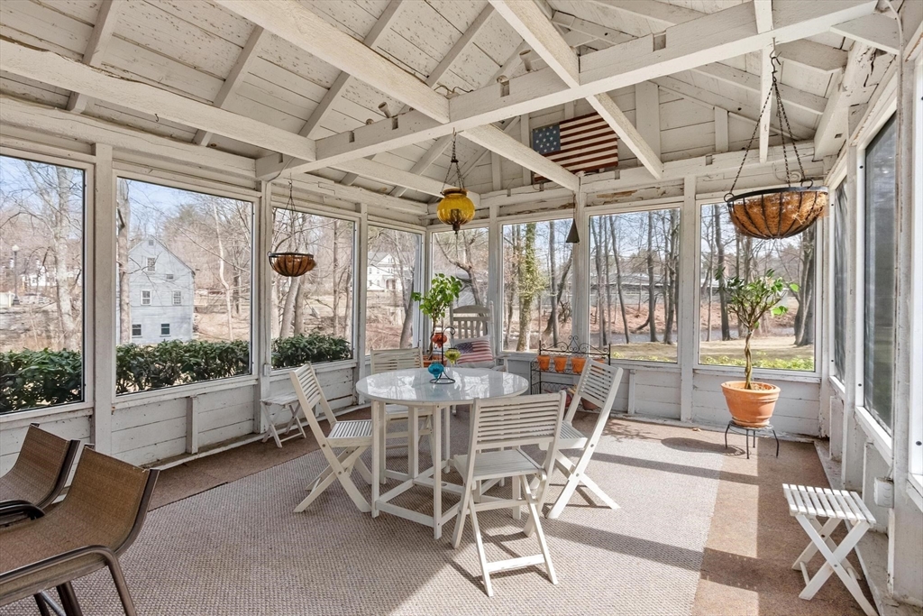 INCREDIBLE WATERFRONT OPPORTUNITY at HISTORIC TOWNSEND HARBOR! Here's your chance to live alongside the Squannacook River and enjoy the sounds of the harbor waterfall across the street. This lovingly maintained Federal Style Antique circa 1803 is well-sited on beautifully manicured 1.7 Acres with Gazebo and expansive lawn ideal for pets and play-space. A true classic style with twin end-chimney hip-roof desgin and red-brick ends on the exterior. Features include a blend of modern conveniences including updated 200 AMP electrical, new boiler (2020), recent roof, and a generator connection. The comfortable 8 Room floor plan boasts formal dining room, kitchen w/breakfast nook, formal living room, family room, 2 or 3 Bedrooms, Office/Bonus Rm, four Rumford fireplaces, some wide-board flooring, architectural moldings, First Floor Laundry, built-ins, and a spacious screened porch & outdoor brick patio. Handy to shopping area and just steps to new rail trail. Title 5 Approved (3 BR System).