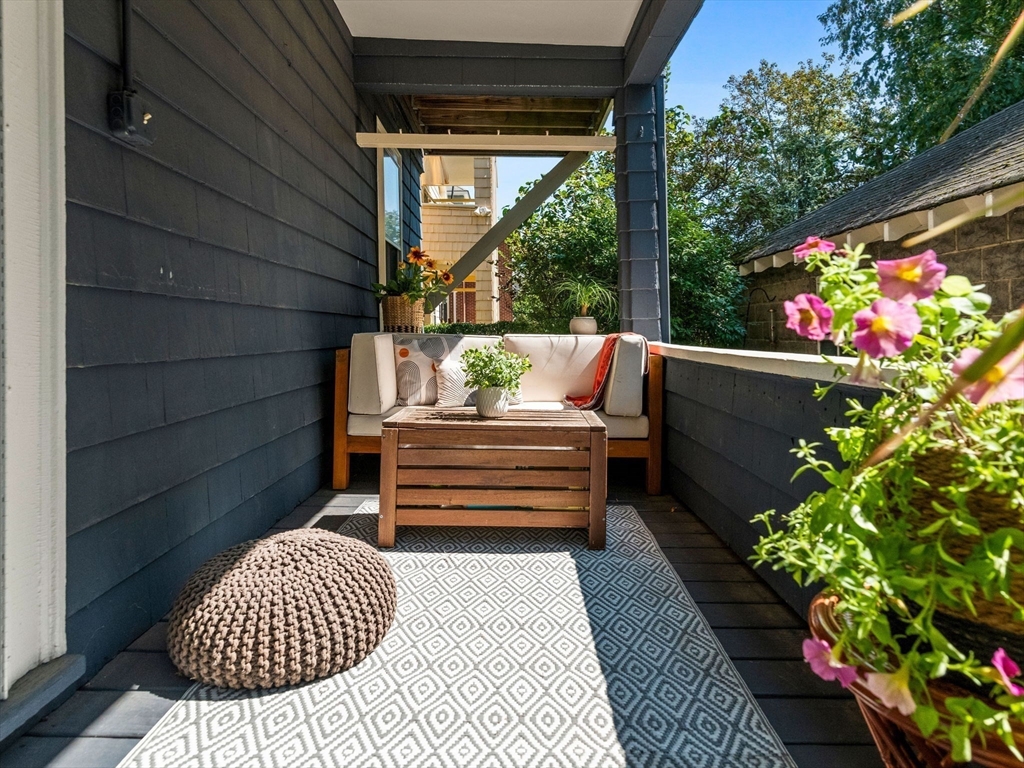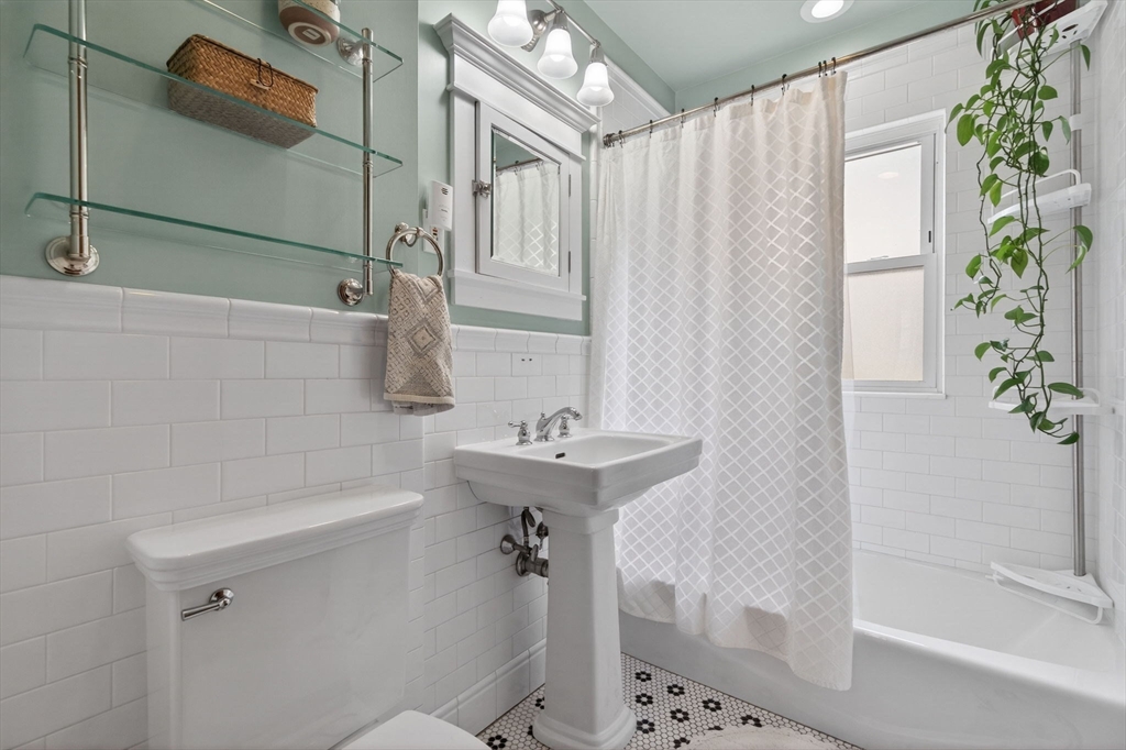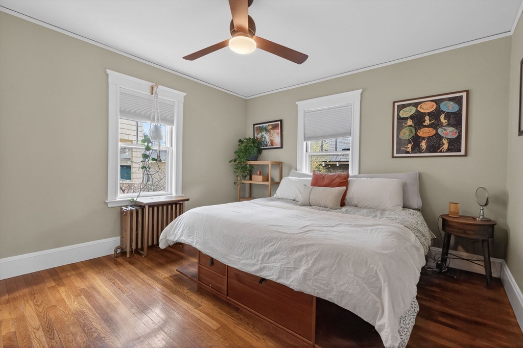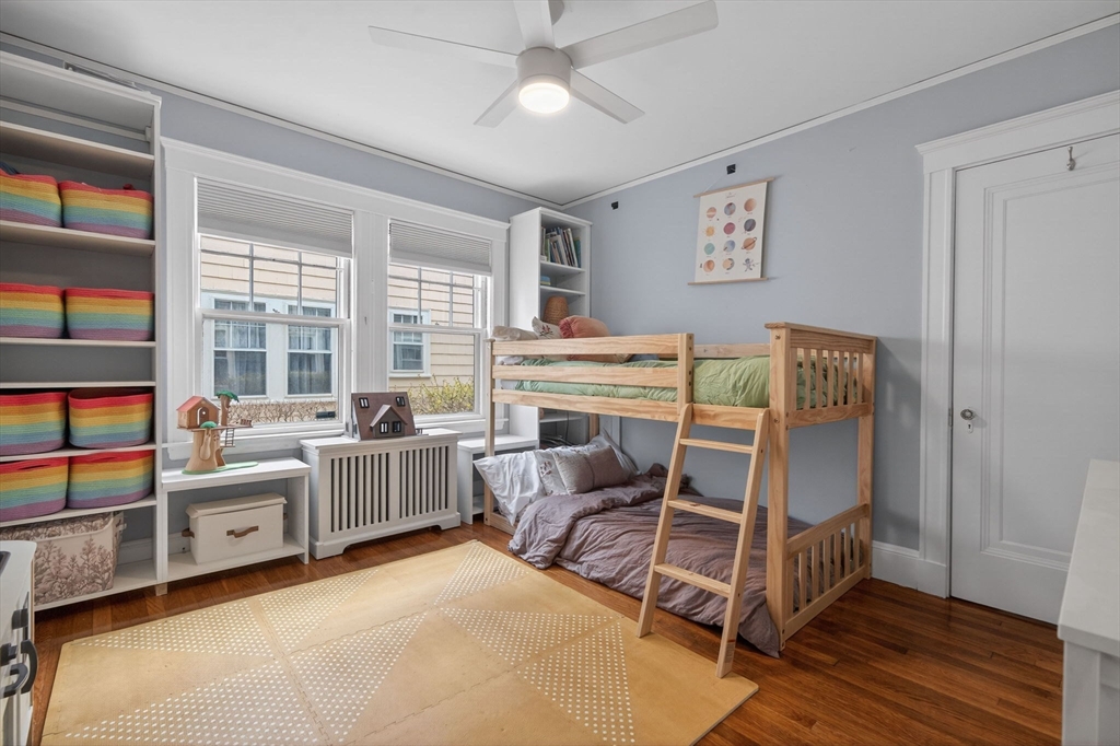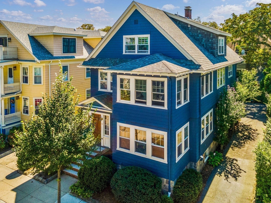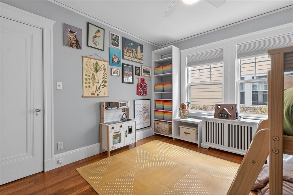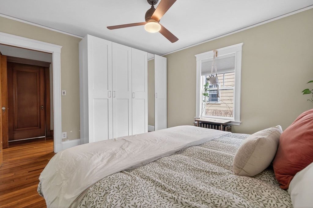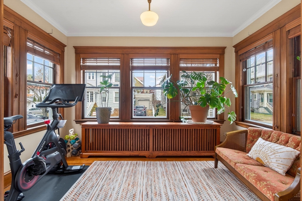 Timeless Pondside charm w/ garage parking! This 2-bedroom plus is rich in original detail, featuring beautiful gumwood trim throughout. A welcoming entry with coat closet opens to the living room with adjacent sunroom—perfect for a work out area, office, or play space. The dining room showcases classic character with wall paneling, vibrant wallpaper, & built-in hutch. The kitchen offers cherry cabinetry, granite countertops, counter seating peninsula, & a breakfast bar, while a butler’s pantry provides additional storage or flexible workspace. The primary bedroom features armoire cabinets & the period bathroom is finished with a pedestal sink & mosaic tile floor. The second bedroom offers versatility with two separate entrances. Enjoy a covered back deck overlooking a small garden. Detached garage parking for one car, exclusive laundry, ample basement storage inc. cedar closet. Located on a coveted neighborhood street known for its block parties, next to Pond, convenient to Longwood.