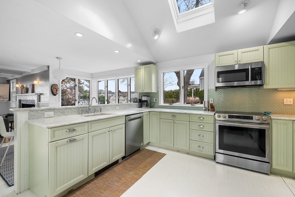 Rare opportunity to own a waterfront residence on one of Swampscott’s most coveted points. This charming harbor-front home, offering 3 to 4 bedrooms and 3.5 baths, delivers breathtaking, esoteric views of the Swampscott harbor to the Boston skyline — a daily reminder of coastal living at its finest. Perfectly situated just steps from some of the North Shore’s quintessential beaches, boutique dining, and seaside amenities, the property provides both a quiet, private retreat and immediate access to vibrant coastal lifestyle pursuits. Thoughtfully updated over time, the home features spacious, light-filled rooms, and great flow for entertaining or relaxing, and well-proportioned bedrooms with scenic outlooks. The flexible floor plan accommodates varied needs —offering easy transition for a first-floor bedroom suite. Outside, enjoy a waterfront setting that invites morning coffee on the terrace or screened porch, sunset gatherings with friends, and easy strolls along the shoreline.