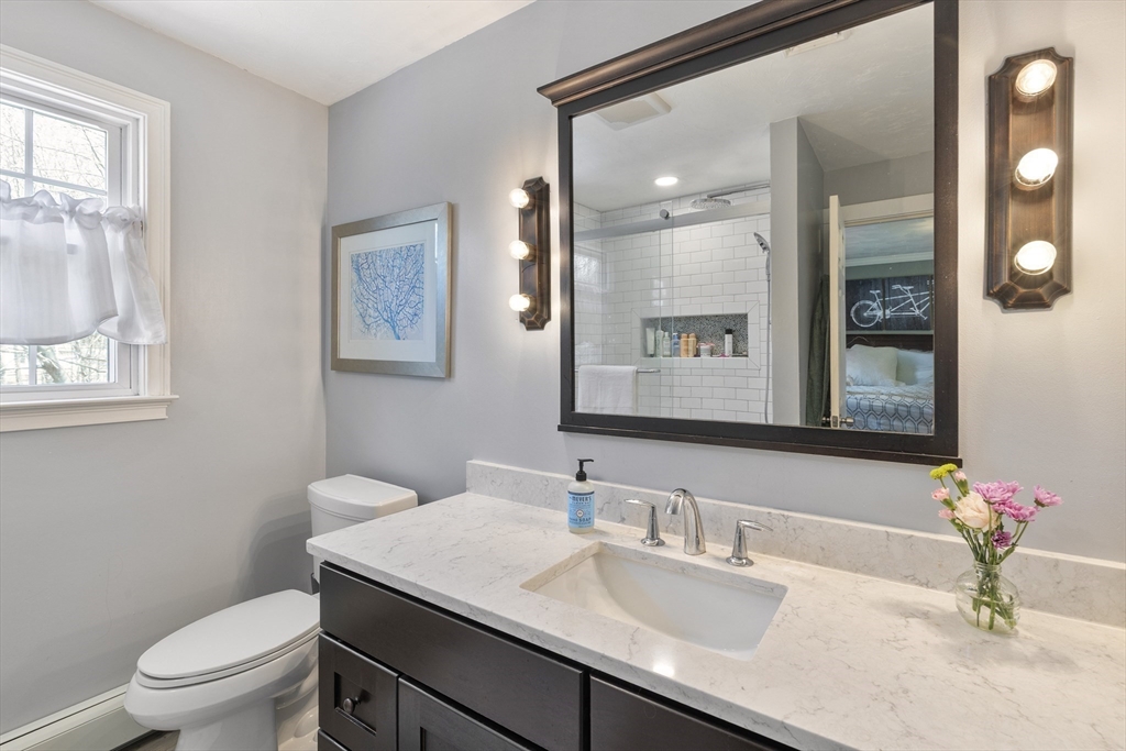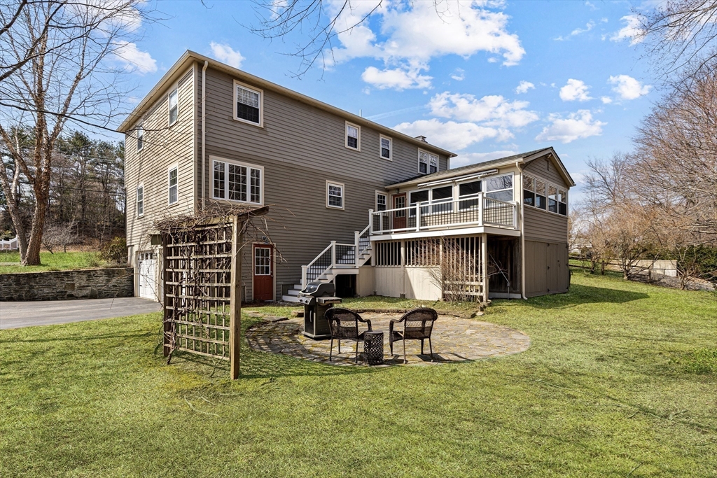 Fall in love with this beautifully updated Colonial in one of Shrewsbury’s most sought after neighborhoods. Just minutes to the vibrant town center with its charming shops, restaurants, and the public library; plus quick access to major highways for an easy commute. This 4-bedroom home features a warm and inviting layout with hardwood floors throughout. The front living room with fireplace flows into a stunning family room with a vaulted ceiling, 4 season sun room, lots of windows, and deck access. Updated kitchen boasts cherry cabinetry, stainless appliances, corian counters, and a center island; spacious and sun-filled dining room perfect for entertaining. Upstairs includes a generous primary suite with full bath, three additional bedrooms and 2nd full bath. Enjoy a quaint backyard with lots of mature landscaping, patio, and a peaceful brook—your own backyard retreat!
