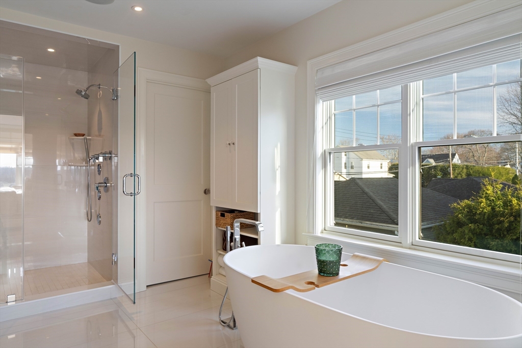 Exceptional 2022 custom-built townhome offering ~4,200 SF of well-executed living space in a prime Needham Heights location. A rare offering distinguished by its level of finish, thoughtful layout, and overall quality.The main living level features an open, light-filled design with seamless flow, a gas fireplace, butler’s pantry, and extensive custom cabinetry throughout.The primary suite includes a private deck, gas fireplace, and a spa-like bath with radiant heated floors, soaking tub, and oversized shower, along with a fully built-out walk-in closet with center island.The fully finished lower level with kitchenette provides flexibility for extended living, guests, or in-law potential.Additional features include professionally designed outdoor living area with hot tub, whole-house reverse osmosis system, Lutron lighting, Sonos audio, double washer/dryer laundry room with sink, epoxy-finished garage and utility spaces, and a dedicated cedar closet.