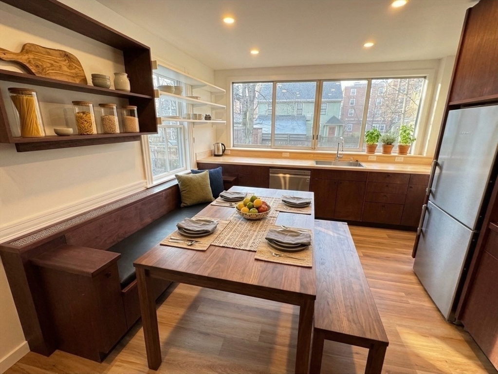 Looking for a standout townhouse near Harvard Square? This is the one. This beautifully updated 4 bed, 3.5 bath townhouse; featuring 2 parking spaces, in-unit laundry, and ample storage for effortless living. Recently renovated throughout, you’ll love the brand-new appliances, sleek countertops, fresh flooring, and modern finishes. The layout is perfect for both everyday living and entertaining, with a spacious living room (complete with a decorative fireplace) and a large dining area ready to host. Each bedroom offers generous space and storage, while the primary suite impresses with a walk-in closet and a private ensuite bath. And the outdoor space? Next level. Enjoy three private outdoor areas, including a show-stopping roof deck, plus a private porch and deck—perfect for relaxing or entertaining all year long. This is Cambridge living at its best—modern updates, incredible space, and an unbeatable location. (1 cat allowed)