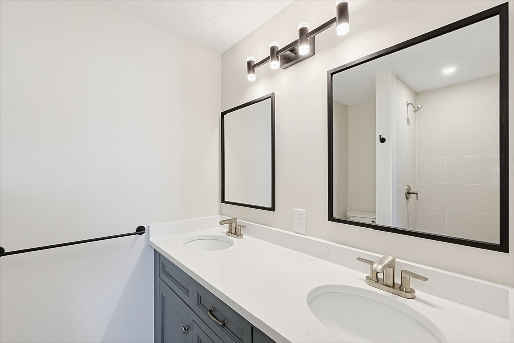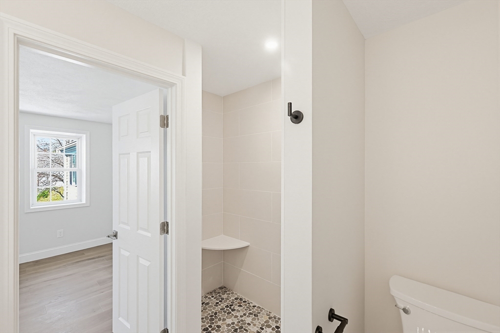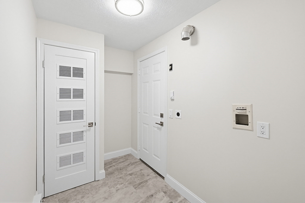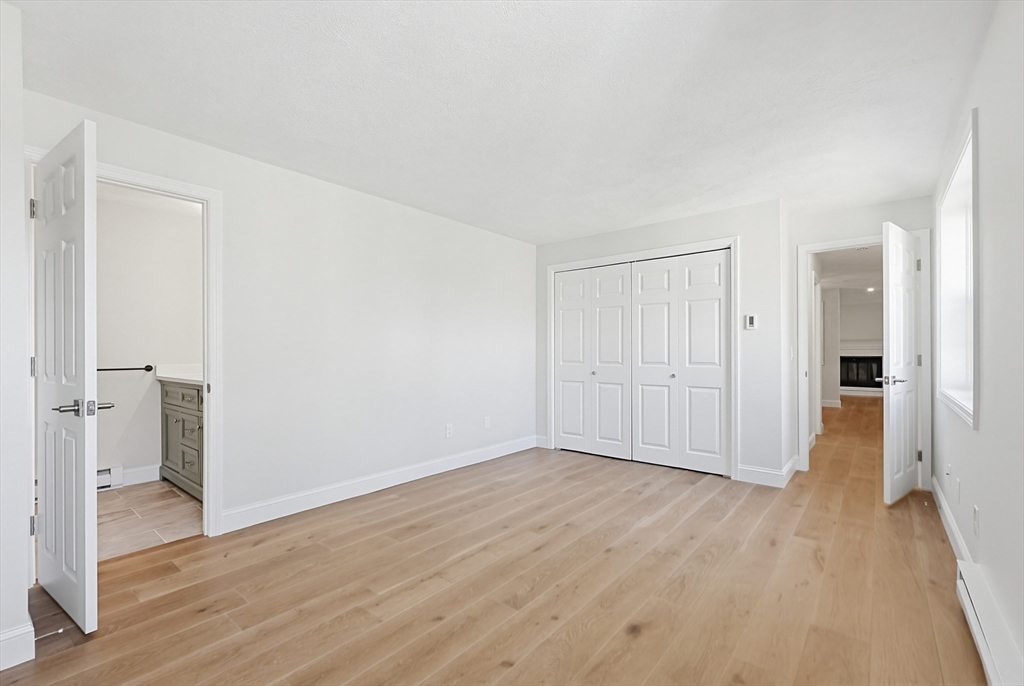 Exceptional one-level living, completely renovated offers BRAND NEW everything! High-end finishes shine throughout, including the stunning kitchen, a true showstopper with its custom white cabinetry, tiled backsplash, quartz counters, and sleek SS steel appliances. Gorgeous 7.25" white oak hdwd floors throughout lead to an expansive front-to-back living room centered around a cozy fireplace, wide open to the enclosed porch w/ newly installed 4-panel glass slider doors. Impressive primary suite offers an expanded, fully tiled walk-in shower & double vanity, while the well-positioned second bedroom sits conveniently across from a gorgeous renovated main bathroom. Modern conveniences include high-efficiency hybrid water heater & in-unit washer/dryer hookups. HOA amenities include a clubhouse w/ indoor pool/sauna, tennis/pickleball courts, plus an exclusive carport! Prime location w/ easy highway access & just minutes to downtown, Cape Cod Canal, Marina, Beaches and all things coastal!