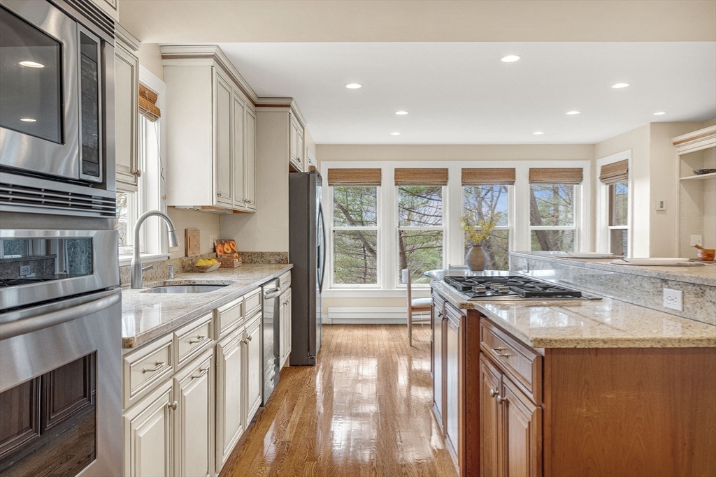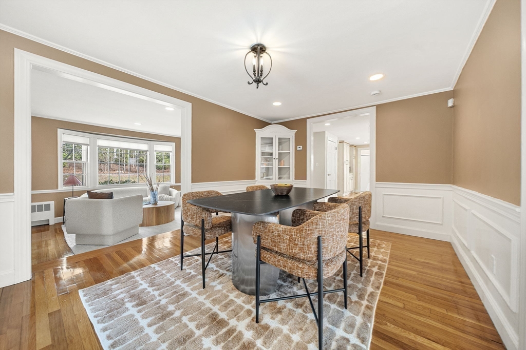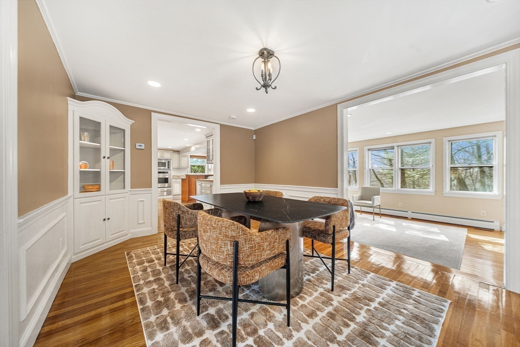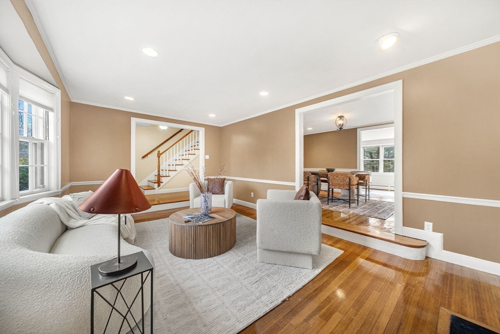 Highly desirable Newton Highlands location! Conveniently close to shopping and dining along Needham Street, Chestnut Hill Mall, Green Line stops, and Route 95, yet privately set at the end of a quiet cul-de-sac. Offering over 3,400SF of nicely renovated living space, this sun-filled 5-bedroom, 3.5-bath home is a rare combination of space, updates, and cul-de-sac privacy. The open floor plan features a custom kitchen with granite counters and center island, flowing into the family room and opening to a deck overlooking a private, wooded backyard that provides a peaceful natural backdrop and added privacy. Additional highlights include refinished hardwood floors, a mudroom with access to an attached two-car garage, abundant storage, and a finished basement with a full bath, a legal bedroom and an additional room with its own entrance-perfect for a home office. Upstairs offers a primary suite with walk-in closet and private bath and 3 bedrooms. Offers will be reviewed by Sunday 4/12, 2pm