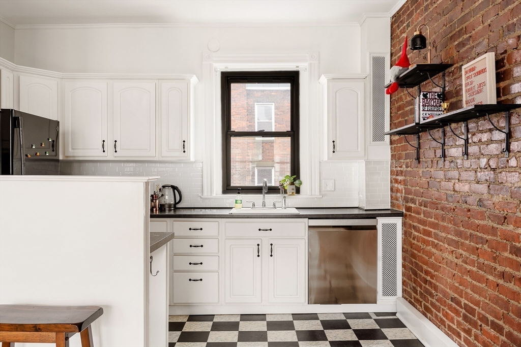 New to market in Fenway. This elegant one-bedroom residence in. classic prewar building blends timeless Boston charm with modern convenience. Hardwood floors, exposed brick, a clawfoot soaking tub, and detailed moldings highlight the home’s character, while a dishwasher, breakfast bar, open kitchen, and in-building laundry add everyday ease. Perched on the sun-filled third floor overlooking tree-lined Jersey Street, the home offers 684 sq. ft. with 9-ft ceilings, an oversized bedroom, and excellent storage – creating a layout that lives larger than expected. Ideally located moments from the Fenway station and everyday essentials like Target and Star Market, with easy access to Longwood Medical area, Newbury Street, Coolidge Corner, and the scenic Emerald Necklace. A rare opportunity to own a refined city residence in one of Boston’s most vibrant neighborhoods.