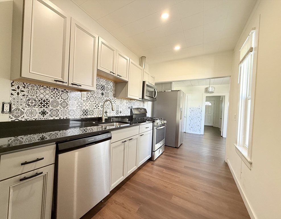 Fantastic opportunity! This versatile, oversized side-by-side two-family home offers tremendous potential and is a must-see. Each unit features four spacious bedrooms and two full bathrooms, along with a new central air system. Both units offer functional kitchens with breakfast areas, dining rooms, and separate living rooms; ideal for everyday living and entertaining. There are hardwood, tile and vinyl flooring throughout the house.The property also includes a fully insulated two-car garage with open space above, offering exciting potential for a future ADU, studio, or small in-home business (subject to approvals). This property is ideal for multigenerational living, owner-occupancy with rental income, or investment. It combines comfort, flexibility, and long-term value.