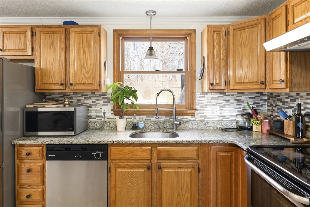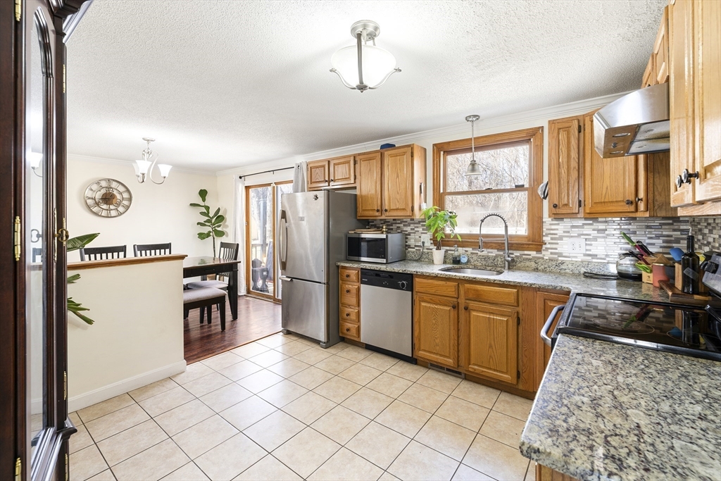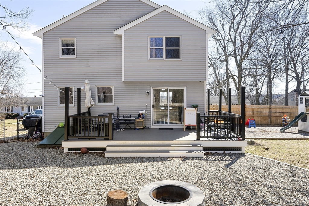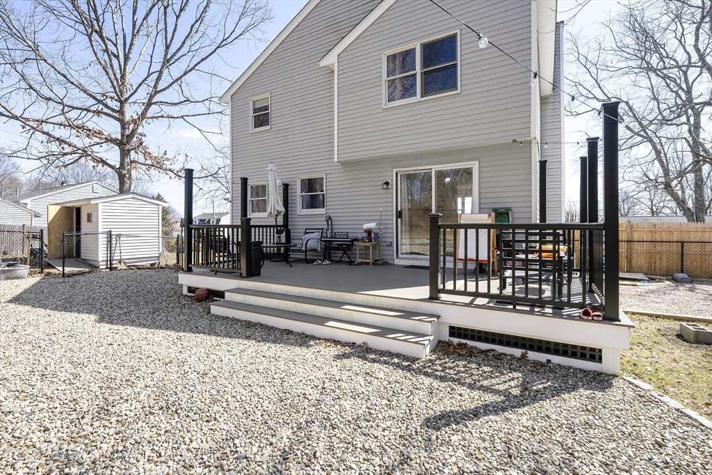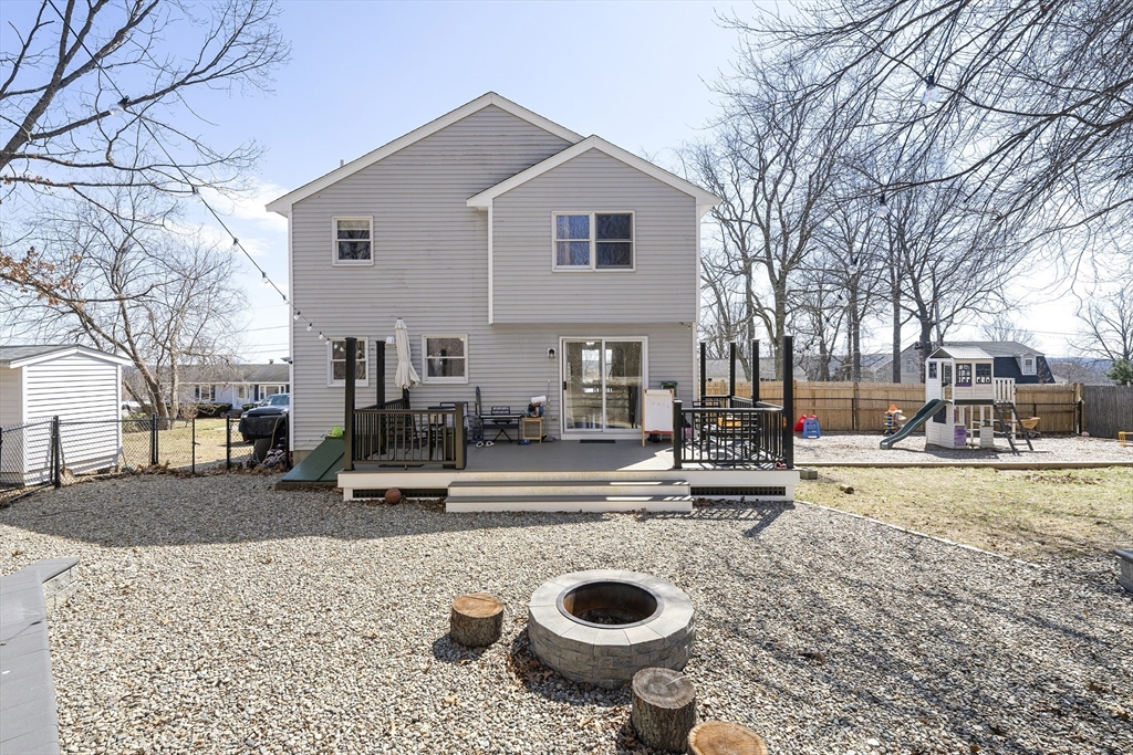 Tucked into one of the area's most desirable neighborhoods, this beautifully maintained 3-bedroom, 1.5-bath home strikes the perfect balance between everyday comfort and effortless entertaining.From the moment you walk in, the warm living room sets the tone. A wood-burning fireplace anchors the space, while new pet-friendly flooring flows throughout. The kitchen impresses with granite countertops and an open connection to the dining area, making weeknight dinners and weekend gatherings equally easy.Step outside to one of this home's true showstoppers: a fully fenced backyard with brand-new decking, a built-in fire pit with bench seating, and a dedicated play area. Three generously sized bedrooms each feature custom closet systems, and the full bath offers dual sinks for busy mornings. A new roof and water heater (May 2024), new vinyl floors(2025), new shed (2025) and new patio fence — just move in and enjoy.