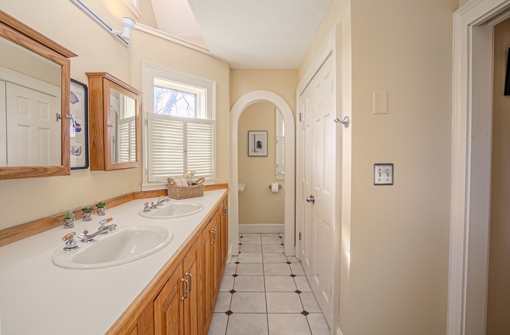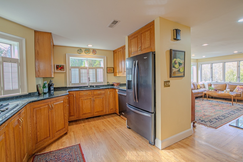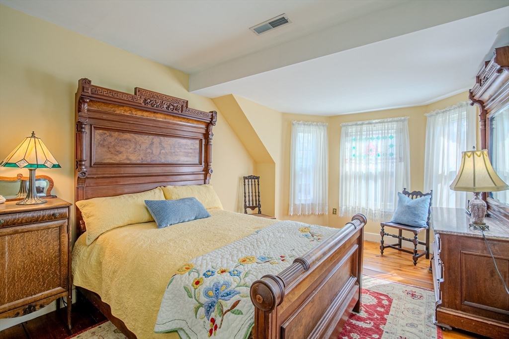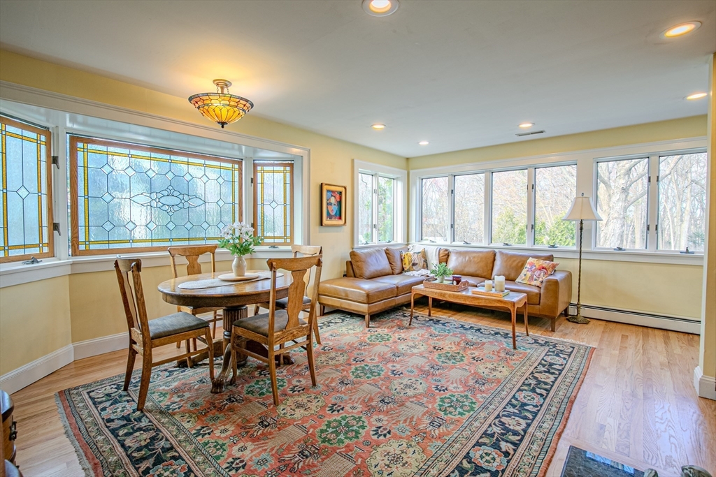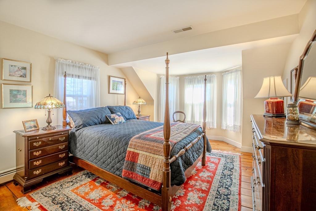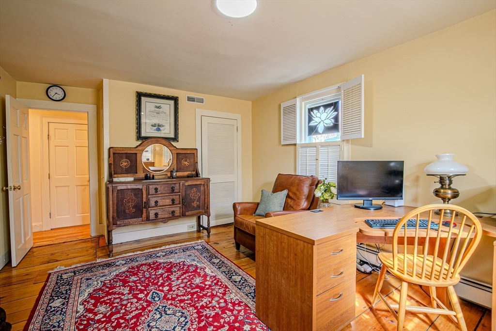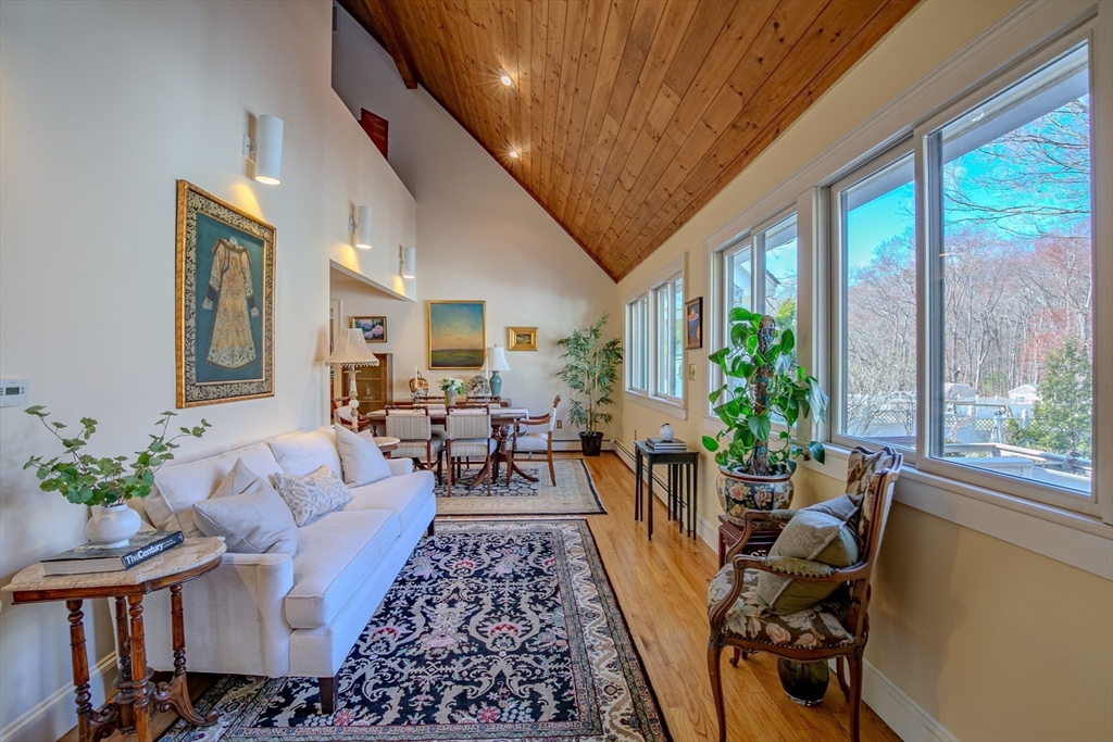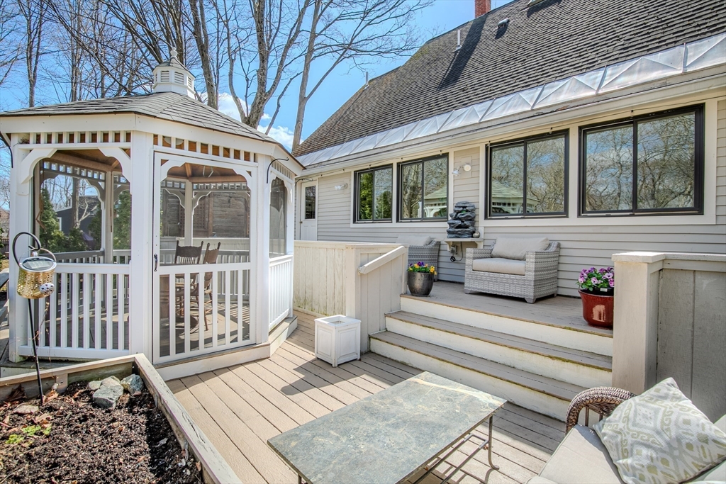 Experience the best of Newburyport in this beautifully converted 1850s Colonial. Set on a lush half-acre, this home offers 3 bedrooms and 2 first-floor flex rooms—perfect for an office, den, or additional bedroom. The interior shines with historic wide-plank pine and polished oak flooring. A welcoming entry leads to an open living/dining area featuring a cathedral wood-planked ceiling and expansive windows overlooking the backyard with a two-tiered deck and gazebo. The kitchen boasts custom Walter Lane cabinetry, while the sun-soaked family room provides a warm retreat with a wood-burning fireplace, custom built-ins, and a glimpse of the river. Dual staircases lead to the second floor, featuring a primary suite with skylights, bath w/vaulted ceiling, and walk-in shower. Modern updates include NEW 2026 heating system, newer central A/C, and a 2-car garage. Just minutes from the vibrant downtown, this residence is a serene escape close to local parks, trails, marinas, and beaches.