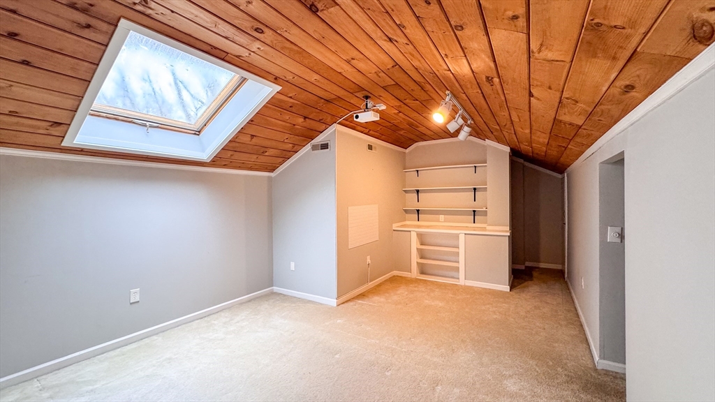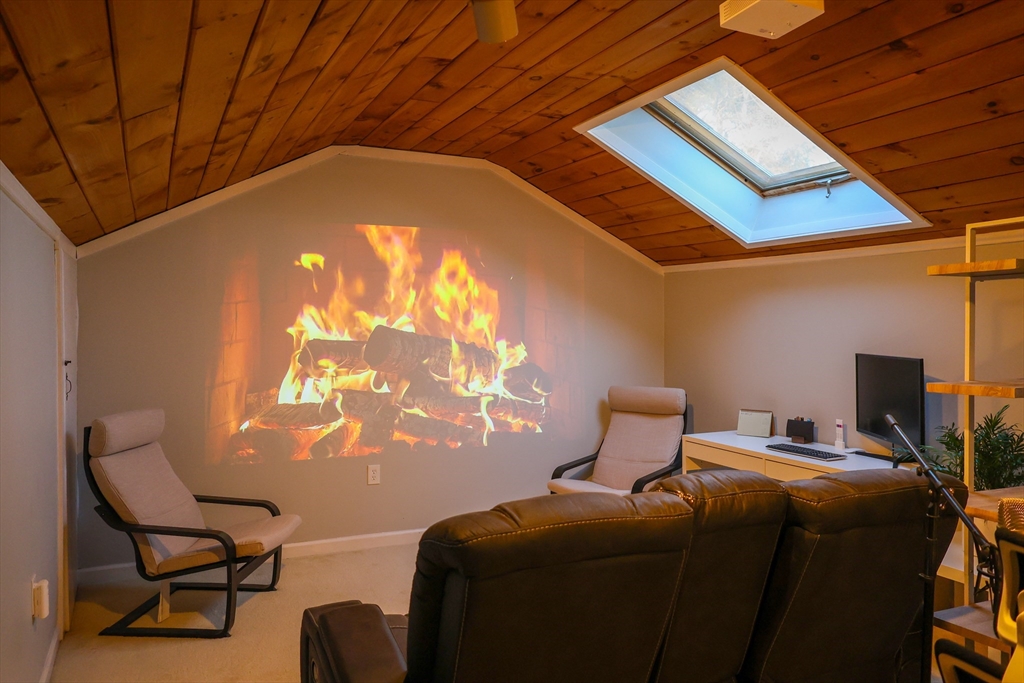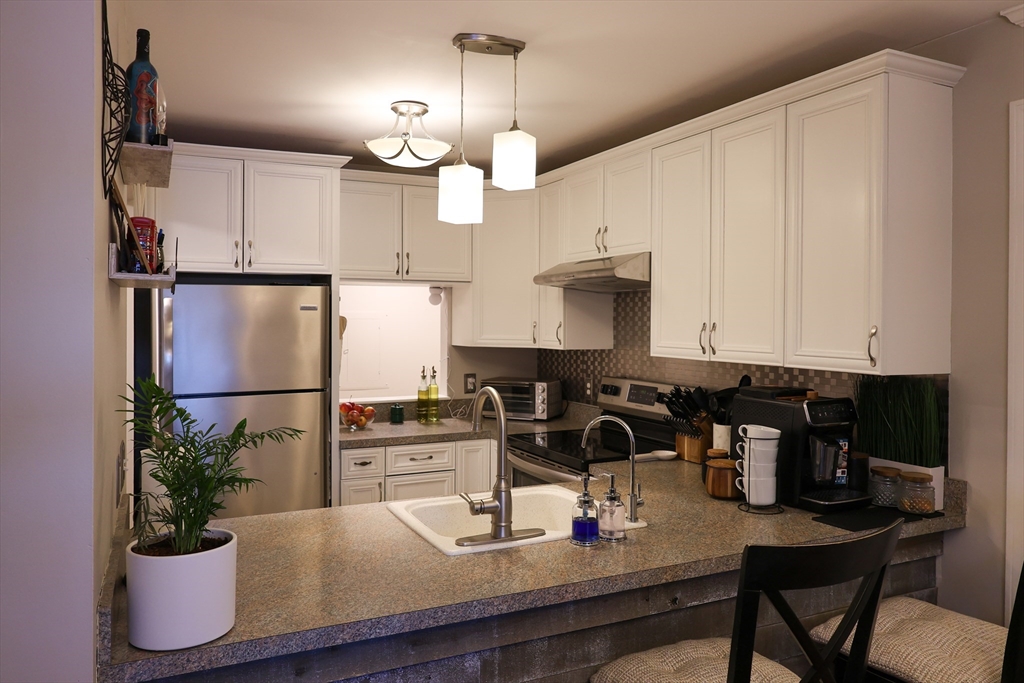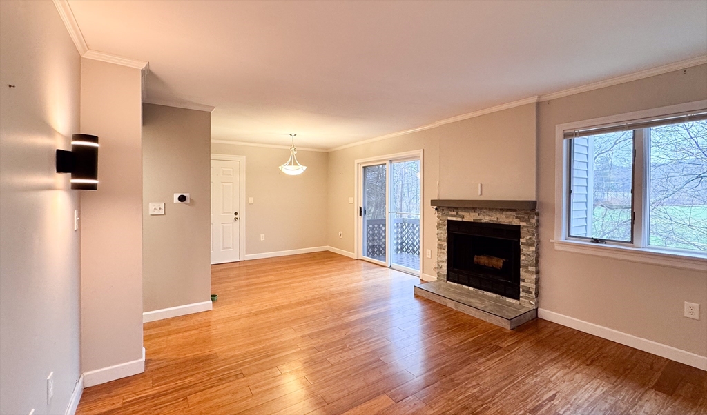 Welcome to a beautifully maintained, move-in-ready condo, ideally located approximately 1 mile from MBTA Commuter Rail and just moments from the Town Center, offering a perfect blend of convenience and everyday comfort. This bright and inviting second-floor unit features a flexible layout with an additional unique loft space above the unit, ideal for a home office, playroom, or cozy retreat. The loft also offers additional storage and can be transformed into amazing home theater, with projector negotiable as part of the sale. Thoughtfully updated, the home includes high-efficiency AC system and new furnace (2023), along with newly remodeled closets with lighting (2025), ensuring both comfort & modern functionality. Enjoy peaceful surroundings from a private balcony overlooking golf course, or relax by the charming fireplace. The spacious garage offers dedicated laundry & storage. A wonderful opportunity to enjoy comfort, style, and a welcoming community in a highly convenient location.