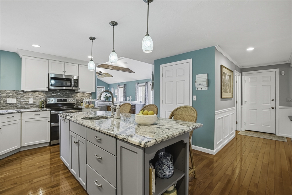 22 Pine Warbler is a dreamy colonial that beams with pride of ownership. Intentional upgrades throughout the property make this a must see. The kitchen has an abundance of storage and space. Hardwood throughout most of the home, has a finished basement, an ADU with separate access, 80 gallon hot water tank, oversized garage with steel-I-beam, A Generac generator for the whole house, solar panels are owned, whole yard irrigation system, gas fireplaces both inside, and outside. The home is excellently spaced, with incredible amounts of natural light throughout the day and access into and out of the house makes this an entertainers dream. The ADU was previously used as an in-law but provides a new owner with the ability to produce income, or move in a family member. The home is zoned with 3 cooling areas; the main house, the addition, and the ADU. Walk in and drop your bags. This is the home in a cul-de-sac, you've been waiting for, with proximity to the commuter rail and major highway.