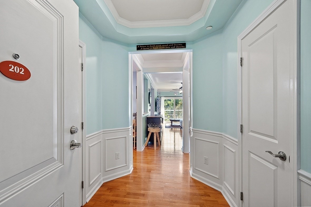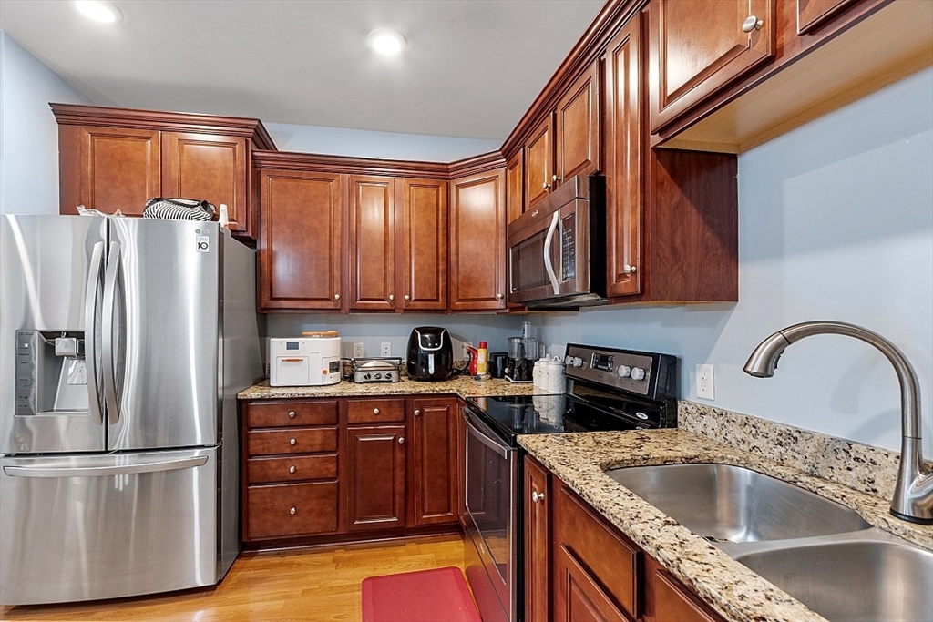 This inviting second-floor home at Jonathan’s Landing combines comfort, style, and convenience. Sun-filled rooms, an open layout, 9-foot ceilings, and detailed crown molding create a bright and elegant atmosphere throughout. The well-appointed kitchen features cherry cabinetry, granite countertops, stainless-steel appliances. The living area extends to a private patio through sliding glass doors, offering a perfect space to unwind. The primary suite includes a walk-in closet, a separate shower, and a relaxing jacuzzi tub. Community amenities include a movie theater, fitness center, swimming pool, clubroom, walking trails, and tennis courts. Ideally situated within walking distance of the Braintree T, just off Route 3, and close to dining and shopping options.