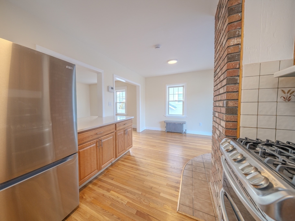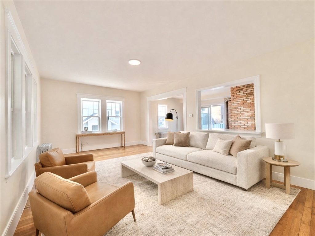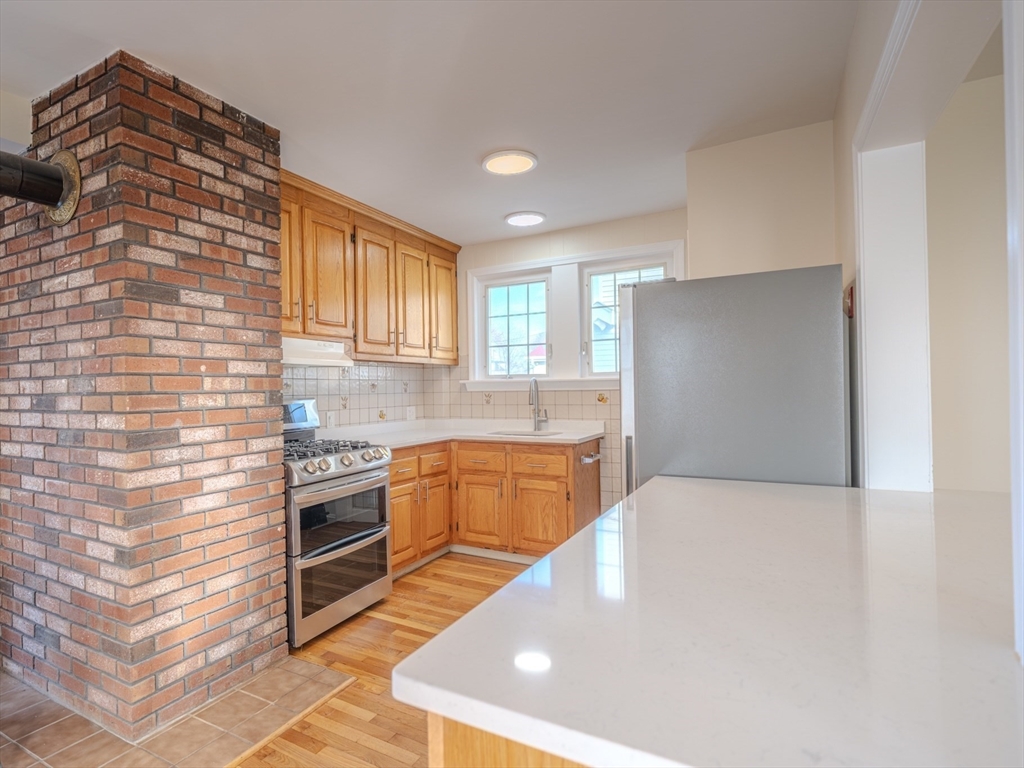 Beautifully updated single-family home located on a quiet street in Revere! This move-in ready property features refinished hardwood floors and fresh paint throughout, creating a bright and modern feel. The open-concept living area offers a seamless flow perfect for everyday living and entertaining. The kitchen is enhanced with new countertops, while the bathroom has been tastefully updated. Enjoy peace of mind with a newer roof and the convenience of a fully fenced yard—ideal for pets, gatherings, or outdoor relaxation. The spacious basement provides ample room for storage, a home gym, or the perfect man cave. A great opportunity to own a well-maintained home with thoughtful upgrades!