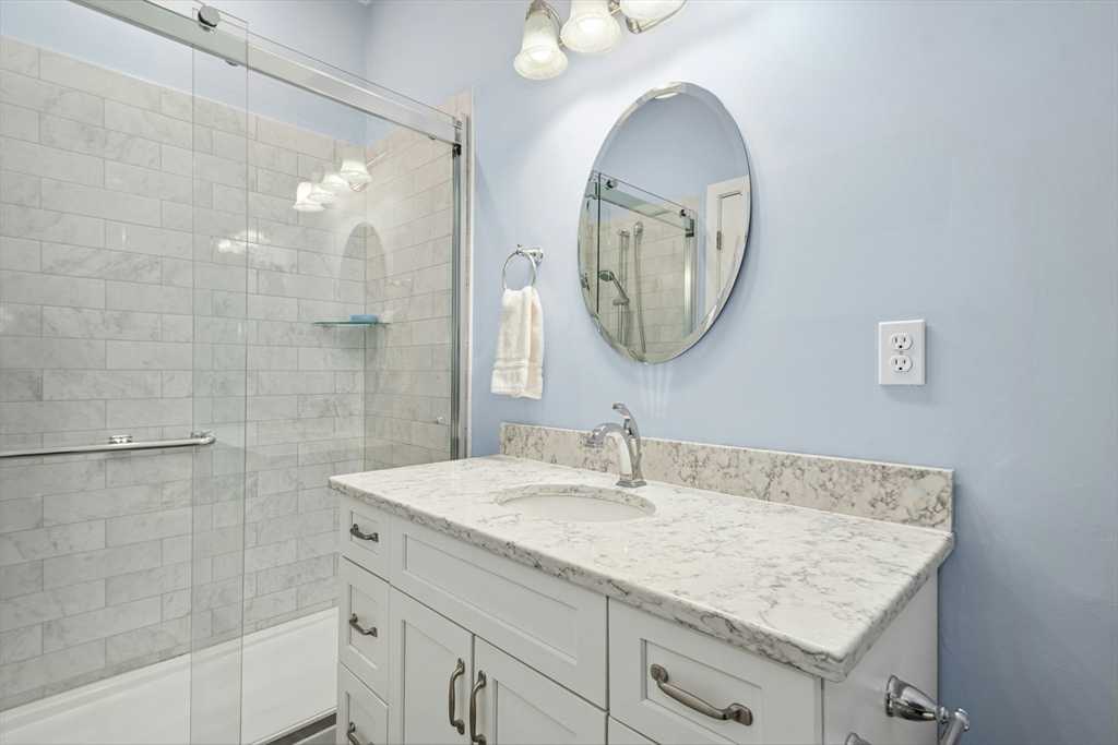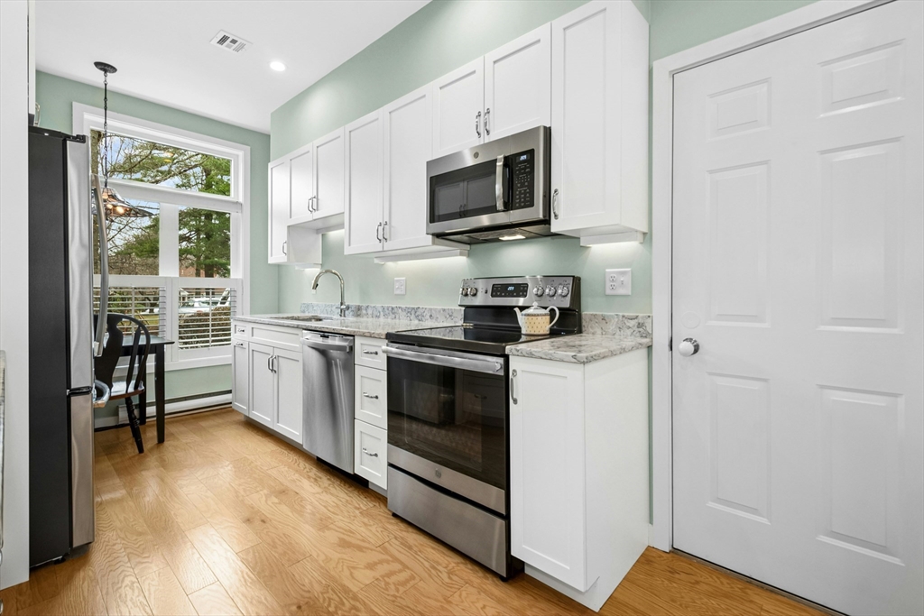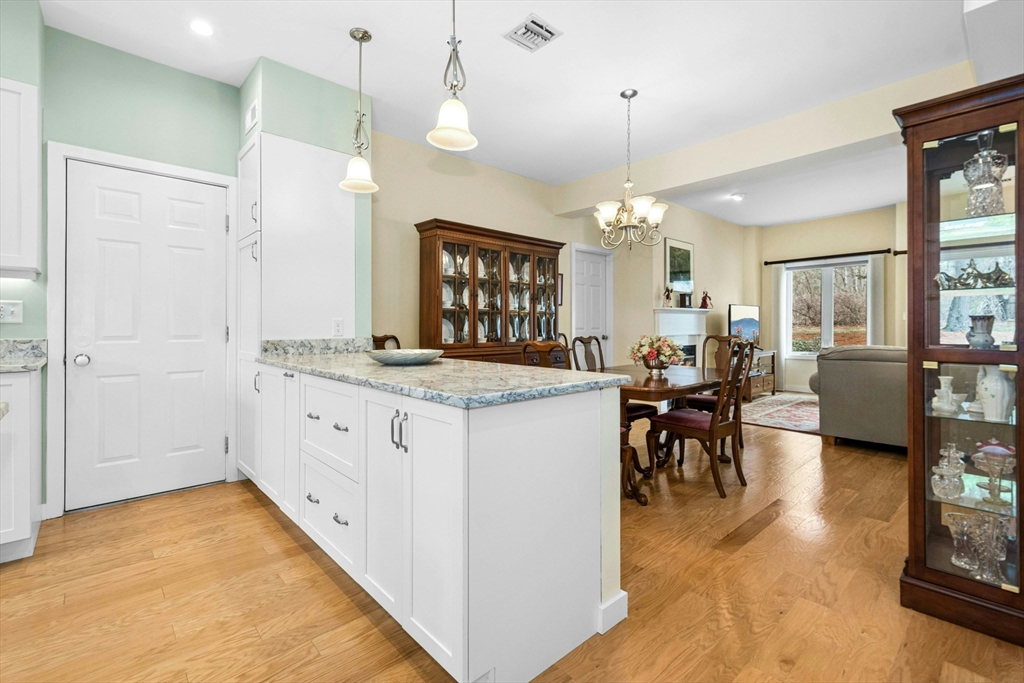 Pristine 2 Douglass Green is completely renovated and ideally situated in a tranquil setting within the highly desirable Quail Run community, near the Lexington line. This beautifully maintained 3 bedroom, 2 bath townhouse is set among 92 picturesque acres offering exceptional amenities including a heated swimming pool, tennis/pickleball, scenic walking trails, and surrounding conservation land. The thoughtfully designed open concept floor plan is tastefully updated throughout. A stunning newer kitchen features crisp white cabinetry, Quartz countertops, & newer SS appliances, while flowing seamlessly into the inviting dining/living room with slider that opens to a private patio overlooking conservation land. Desirable and flexible first floor primary BR w/bath can also function as a comfortable family room. 2 spacious BR's, w/pretty bath complete the 2nd floor. Enjoy a low maintenance lifestyle with a direct entry garage and a welcoming community near restaurants, shopping and nature!