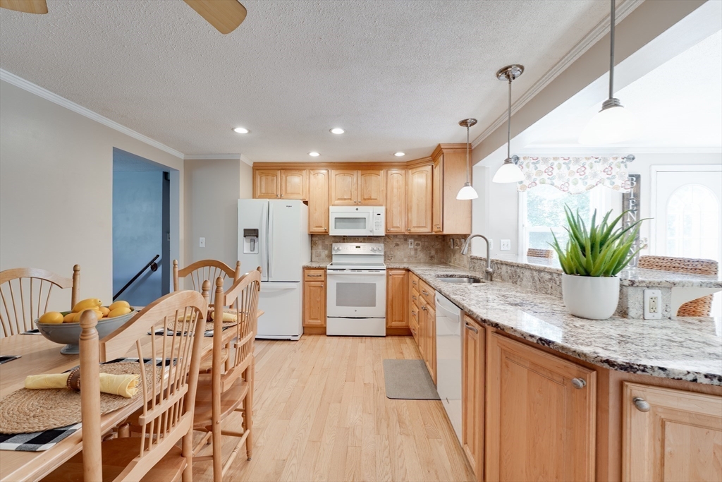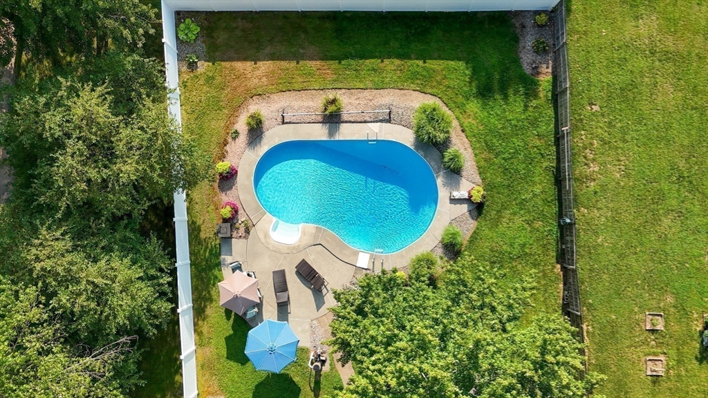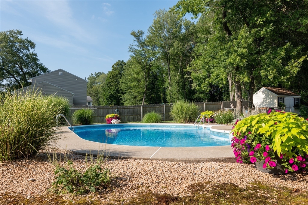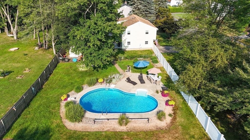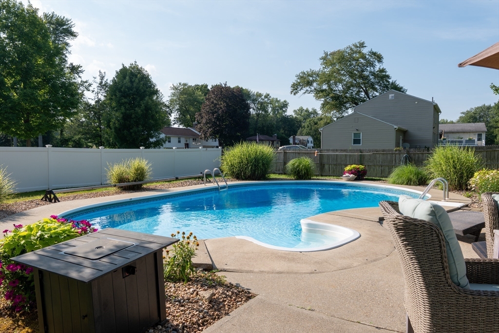 Great opportunity to own this well-maintained 4-bedroom raised ranch in desirable Feeding Hills neighborhood! Set on a beautifully manicured ½-acre lot, this home offers an inviting kidney-shaped in-ground pool—perfect for summer entertaining. Highlights include an updated eat-in granite kitchen with breakfast bar, gleaming hardwood floors, central air, replacement windows, and an irrigation system. The fenced backyard provides privacy, while the lower-level family room features a cozy pellet stove. Enjoy outdoor living with a composite deck, patio, and storage shed. Additional amenities include a 1-car built-in garage for added convenience. Deferred showings until OH Sunday 4/12 from Noon to 1:30.