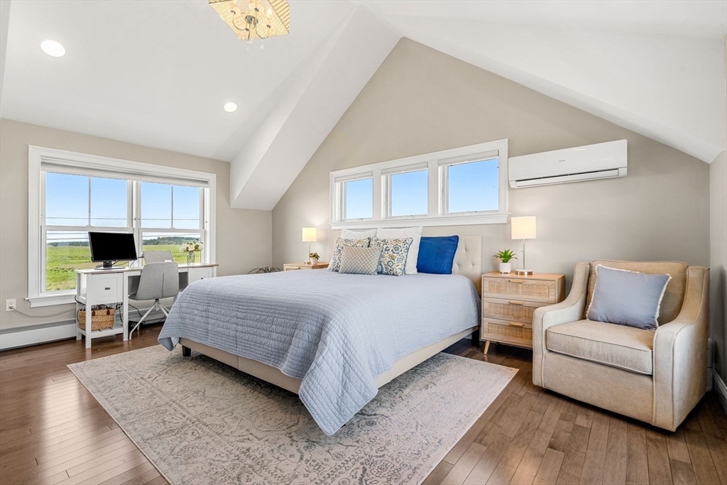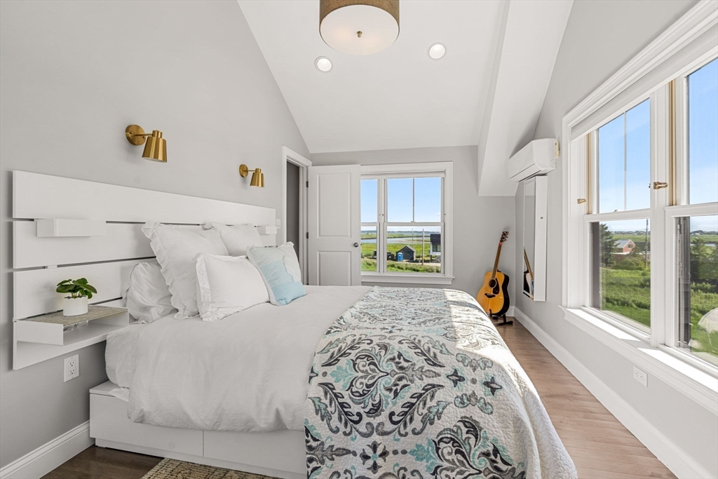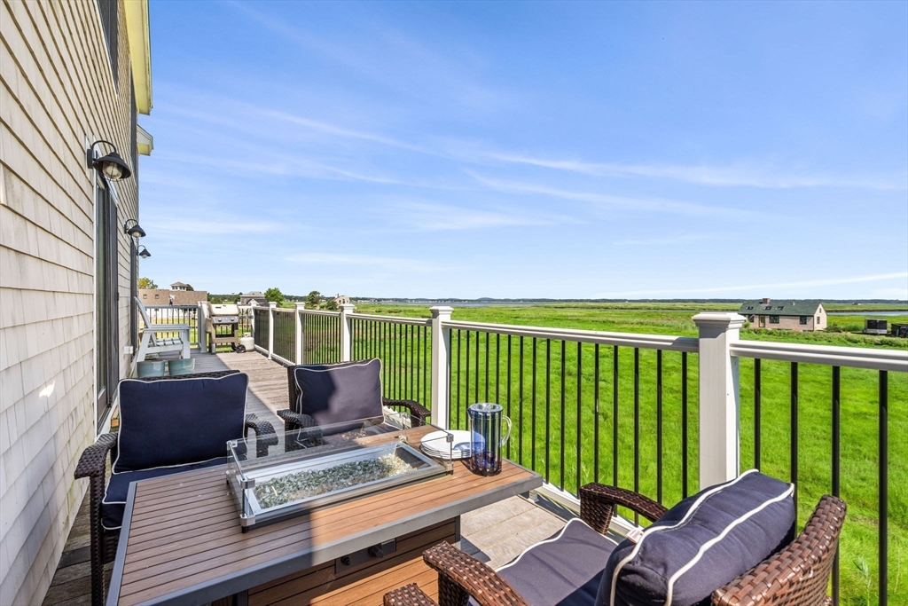 Amazing INVESTOR Opportunity & PRICE - with Excellent short-term rental income history! This newer 2017 construction modern 3Bed/3Bath with 360 degree views of the marsh, Merrimac River, the ocean, eagles, sunrise & sunset. Just 1 mile to Plum Island beaches/Sunset Club & 2 miles to downtown Newburyport. The open-concept main level features a designer kitchen with quartzite countertops, a waterfall island, and stainless appliances. The elegant gas fireplace anchors the living area, and glass sliders with privacy screens open to natural beauty around the home, and large private deck —perfect for enjoying sunrise, sunset & outdoor parties. One bedroom and full bath are on the main level. Upstairs you'll find a guest room, full bath, and a primary ensuite with walk-in closet, double vanity, and tiled shower. The entry level includes storage, utilities and custom built-ins. A custom shed and outdoor shower complete this retreat! Tenanted through 4/30/26.