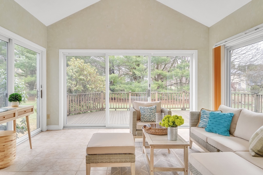 Perfectly situated on a quiet cul-de-sac, this stately, custom-built young Colonial offers a 0.66-acre lot abutting LexFarm. Designed with a focus both on grand-scale entertaining & comfortable daily living, this home has floor plans that effortlessly flow with elegance & functionality. Entering an inviting foyer to a front-to-back living room w/new hardwood floors & a classic bay window. Double French doors open to a spacious family room anchored by a beautiful stone fireplace. The chef's kitchen w/soaring cathedral ceiling, high-end appliances, ample cabinets w/swing-out pantry & countertops! 3-season porch w/cathedral ceiling, multiple expansive sliders lead to a large wrap-around deck & tranquil backyard. Bright laundry room with potential converting to a 4th bedroom/home office. Lower level provides additional rooms for a gym/playroom/media center. Charming side porch/breezeway connects to a spacious two-car garage. Minutes to Lexington Center, Minuteman Bike Path. Don’t miss out!