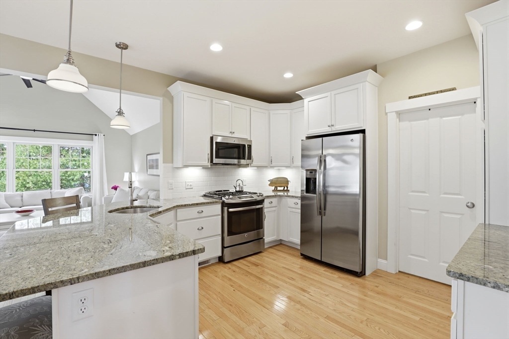 Welcome to this Aspen ranch by The Valle Group, offering comfortable single-level living in the Redbrook community. A welcoming covered porch and two-car garage lead into a bright, open layout with hardwood floors throughout. The kitchen features granite countertops, stainless steel appliances, and a large peninsula that flows into the vaulted living room with a gas fireplace. The dining area overlooks the backyard and opens to a peaceful outdoor setting with a private yard and fire pit, perfect for relaxing or entertaining. The spacious primary suite offers vaulted ceilings, a large closet, and a full bath with double vanity and glass shower. A guest bedroom sits near the front study with an additional full bath. The unfinished basement provides excellent storage or future expansion. Enjoy Redbrook’s trails, Deer Pond, The Village Green, YMCA, and Redbrook Square nearby.