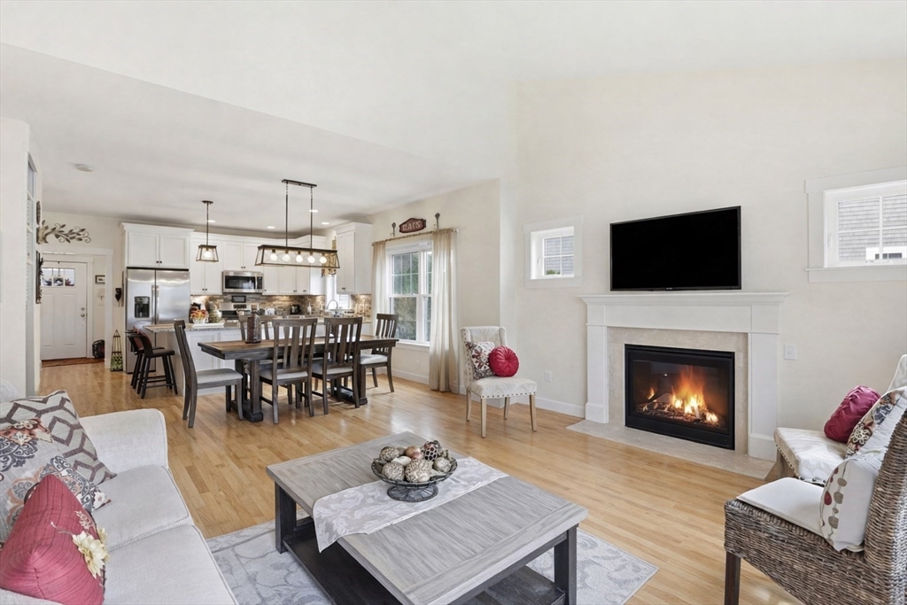 Welcome to Redbrook! Privately set on a spacious lot, this Apple floor plan by The Valle Group offers an open, sun-filled design with thoughtful craftsmanship throughout. Hardwood floors lead you into a stunning kitchen featuring a large center island, granite countertops and stainless steel appliances. The living room is anchored by a cozy fireplace and a wall of windows that seamlessly connect you to the outdoors. The first-floor primary suite offers vaulted ceilings, a full bath with double vanity, and a generous closet. Upstairs, a versatile loft is complemented by two sizable bedrooms and a shared full bath. A full unfinished basement provides ample storage and future expansion potential. Complete with a two-car garage and beautifully landscaped yard with irrigation, all set within a nature-rich community offering trails, kayaking, fishing, and more—just moments from Redbrook’s amenities.