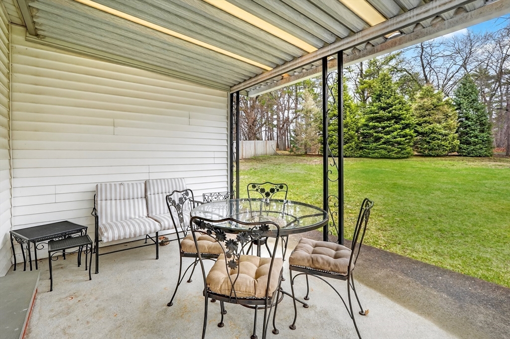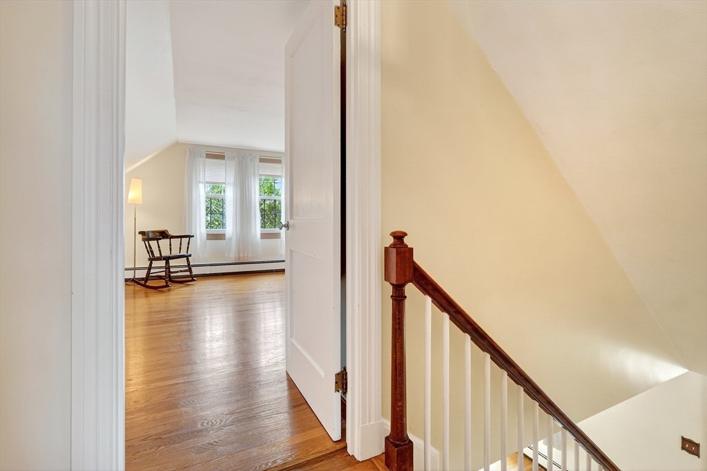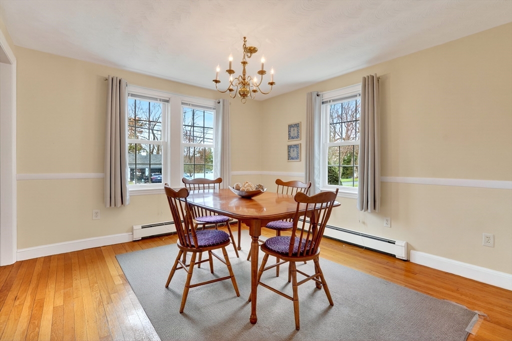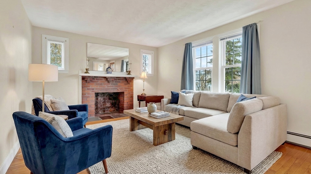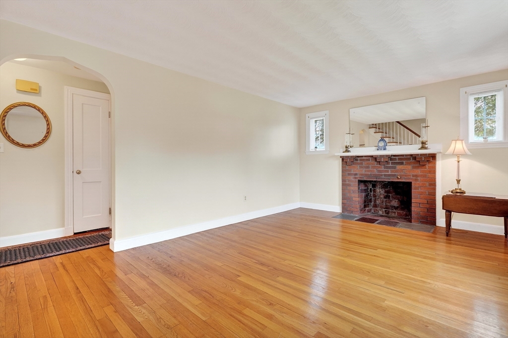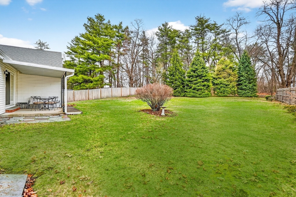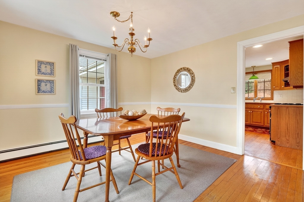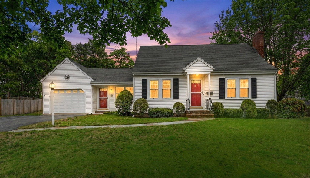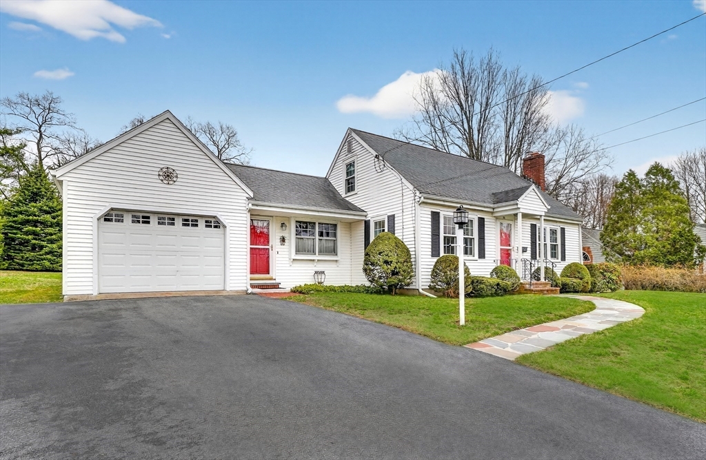 Immaculate cape set on a beautiful, level lot in a convenient neighborhood close to town, highway and public transportation. This home has been lovingly cared for and thoughtfully updated over the last forty years by the current owners. The cheery kitchen opens to a breezeway/den with access to a covered patio overlooking the private yard. There is also a fireplaced living room, dining room and a bedroom and full bath on the first floor. Upstairs are two generous bedrooms. The unfinished basement offers great storage and expansion potential. Young boiler, replacement windows, easy care vinyl siding, oversized one-car garage. Ready for your personal touch!