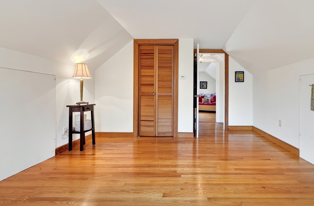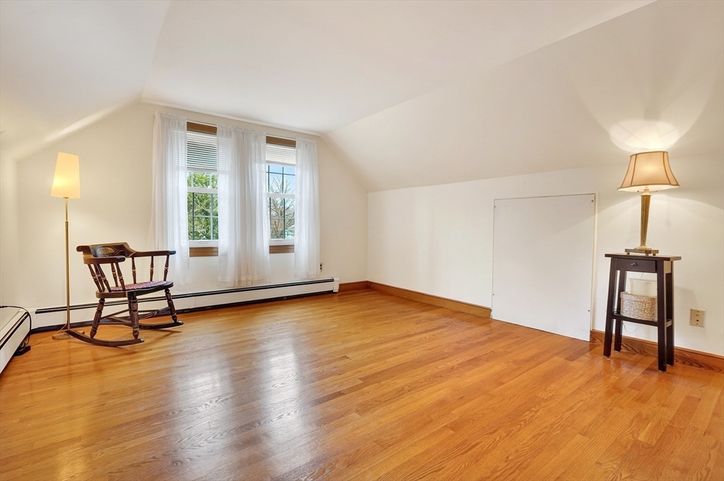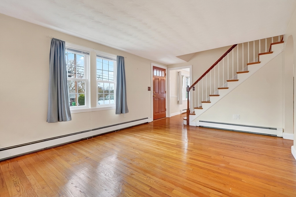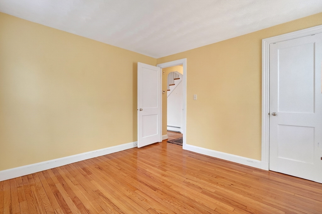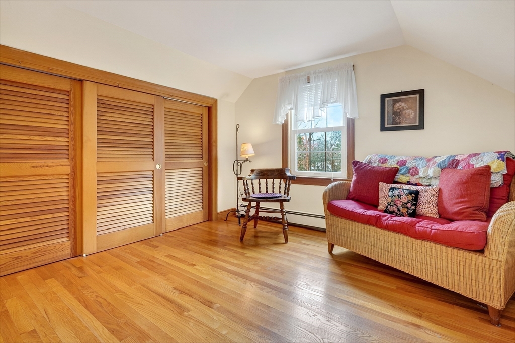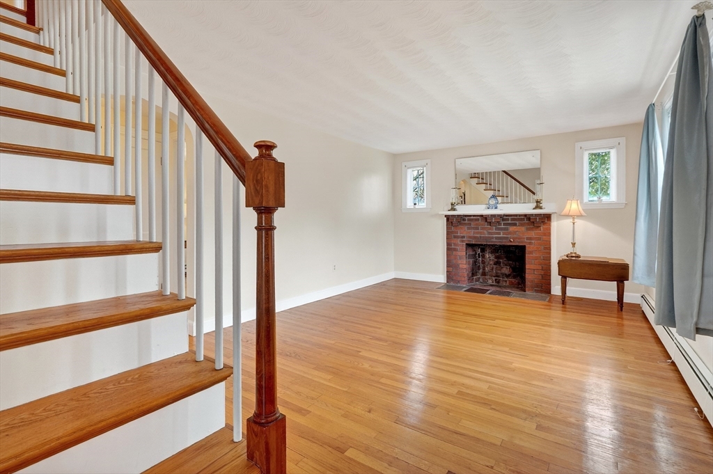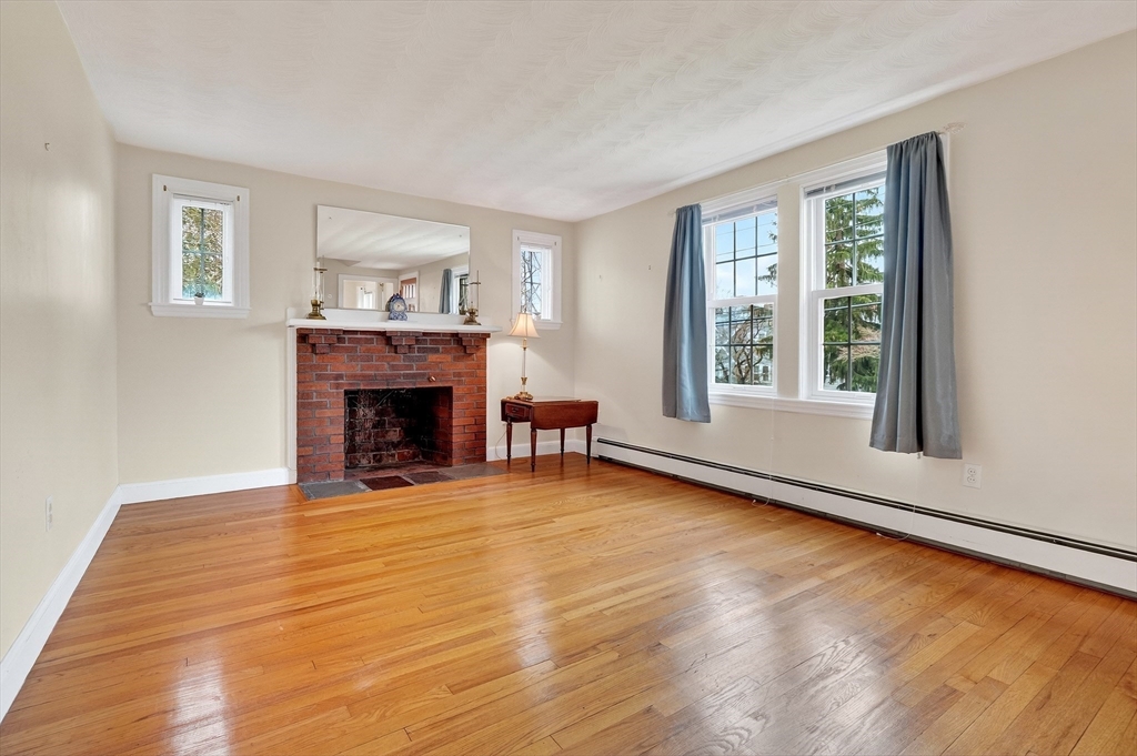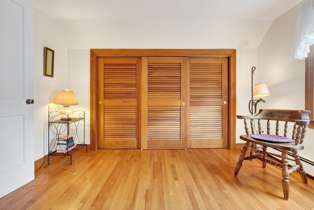 Immaculate cape set on a beautiful, level lot in a convenient neighborhood close to town, highway and public transportation. This home has been lovingly cared for and thoughtfully updated over the last forty years by the current owners. The cheery kitchen opens to a breezeway/den with access to a covered patio overlooking the private yard. There is also a fireplaced living room, dining room and a bedroom and full bath on the first floor. Upstairs are two generous bedrooms. The unfinished basement offers great storage and expansion potential. Young boiler, replacement windows, easy care vinyl siding, oversized one-car garage. Ready for your personal touch!
