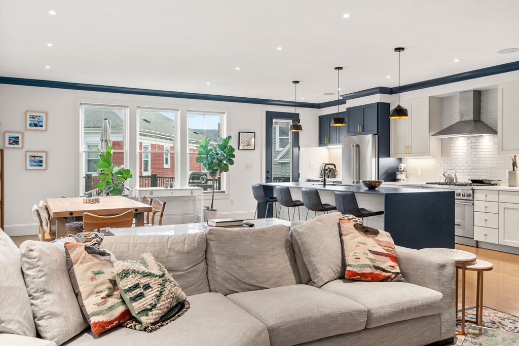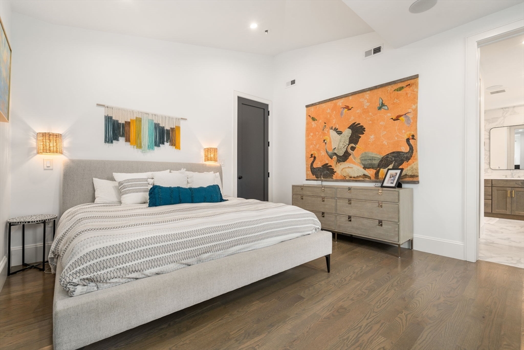 Located in Savin Hill’s coveted Over the Bridge enclave, 5 Caspian Way is a striking townhome that lives like a single-family. Offering 3 en-suite bedrooms, 3.5 baths, and a bonus room for an office or nursery, it blends scale and sophistication. The open main level features a chef’s kitchen with Thermador appliances, two-tone cabinetry, Carrera quartz, a charcoal soapstone island, and wet bar, flowing to dining, living, and a private patio ideal for entertaining. A first-floor en-suite bedroom adds flexibility for guests or multigenerational living, plus a powder room. Upstairs, the primary suite offers a spa-like bath, walk-in closet, and bonus room, alongside a second en-suite. Wide-plank floors, built-ins, speakers, laundry, abundant storage, parking, and EV charger complete the home. Moments to Savin Hill Park, Malibu Beach, the Yacht Club, Red Line, and neighborhood dining.