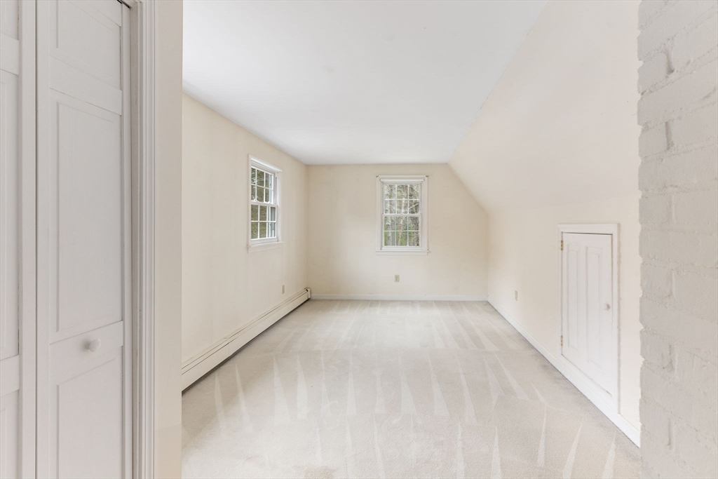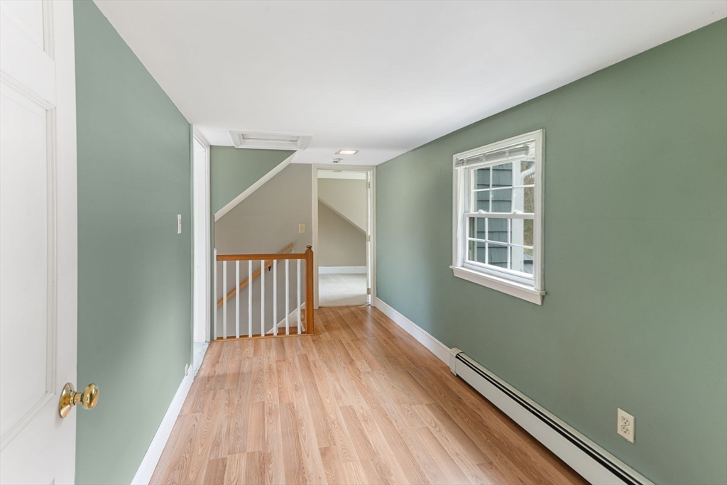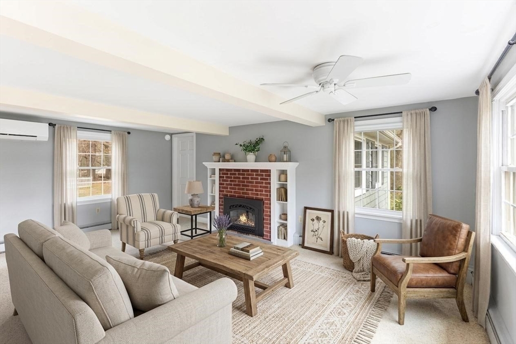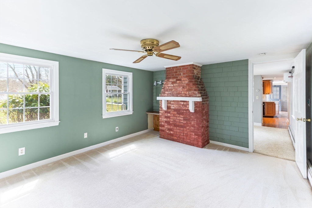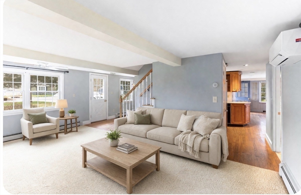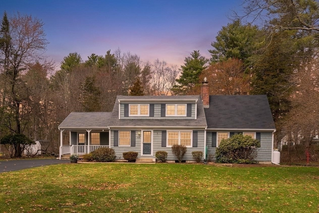 Welcome to this PICTURE PERFECT 3 bedroom full dormer Cape, beautifully set on over an acre of serene, wooded land! Filled with natural light, this home features hardwood floors, skylights, and recessed lighting throughout. The kitchen offers stainless steel appliances, granite countertops, and ample wood cabinetry, opening to a bright, spacious dining area with custom built-ins. A cozy family room with a gas fireplace adds warmth and character. The first-floor primary bedroom, along with a full bath, half bath, and laundry, provides convenient one-level living. Upstairs features two spacious bedrooms plus a versatile bonus room, ideal for a home office or guest space. Enjoy your morning coffee on the inviting front porch or relax on the back deck overlooking the private, peaceful yard. A large shed with electricity and heat offers excellent space for storage, hobbies, or a workshop. BRAND NEW SEPTIC system to be installed by sellers. Don’t miss this wonderful opportunity—WELCOME HOME!
