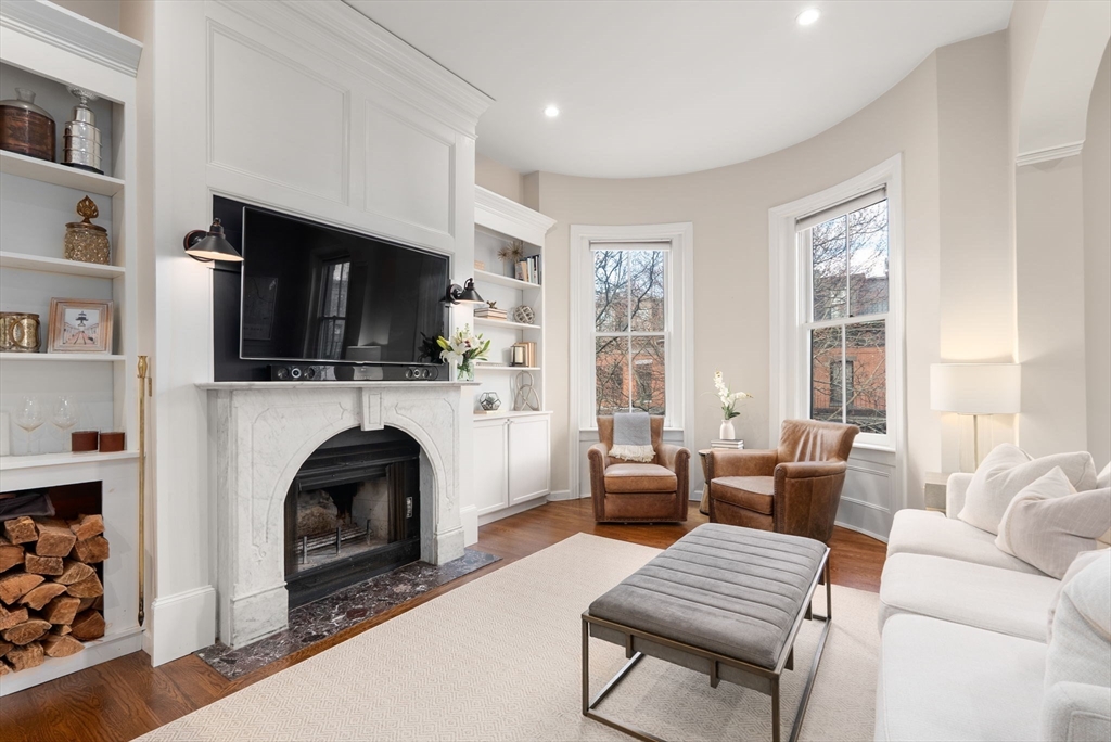 Located on the second floor of this immaculately maintained West Brookline Street brownstone, this one bedroom, one bathroom is pristine and so rare to the market. Residents enjoy unmatched quiet and tranquility on this sought after block given its lack of through-traffic and newly restored homes. Western light pours into the living space from oversized windows and high ceilings. A handsome fireplace is the focal point of this living space, flanked by built-in's and sconce lighting. The kitchen has great storage and a breakfast bar that's perfect for entertaining. A dining space or office area are both possible past the living area. An amazing private deck is accessed to the rear of the building with space for a grill, seating and dining area. The common hallways have been upgraded and are lovely. This unit is complete with in-unit washer dryer, central air and a low condo fee. Enjoy walking to all of the best of both the South End and the Back Bay in this prime location.