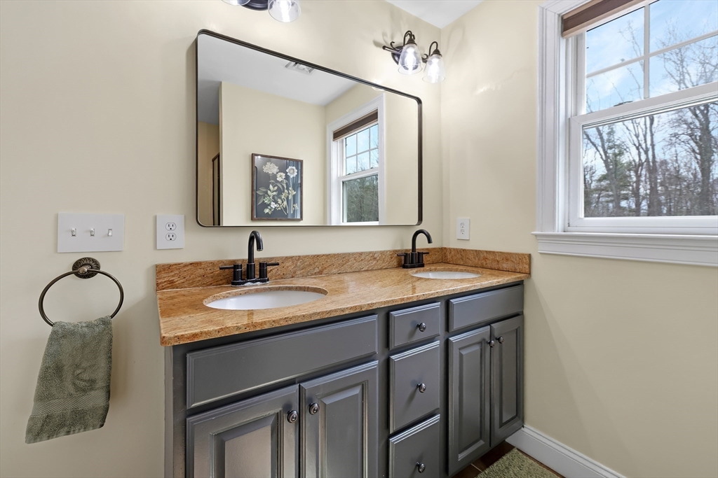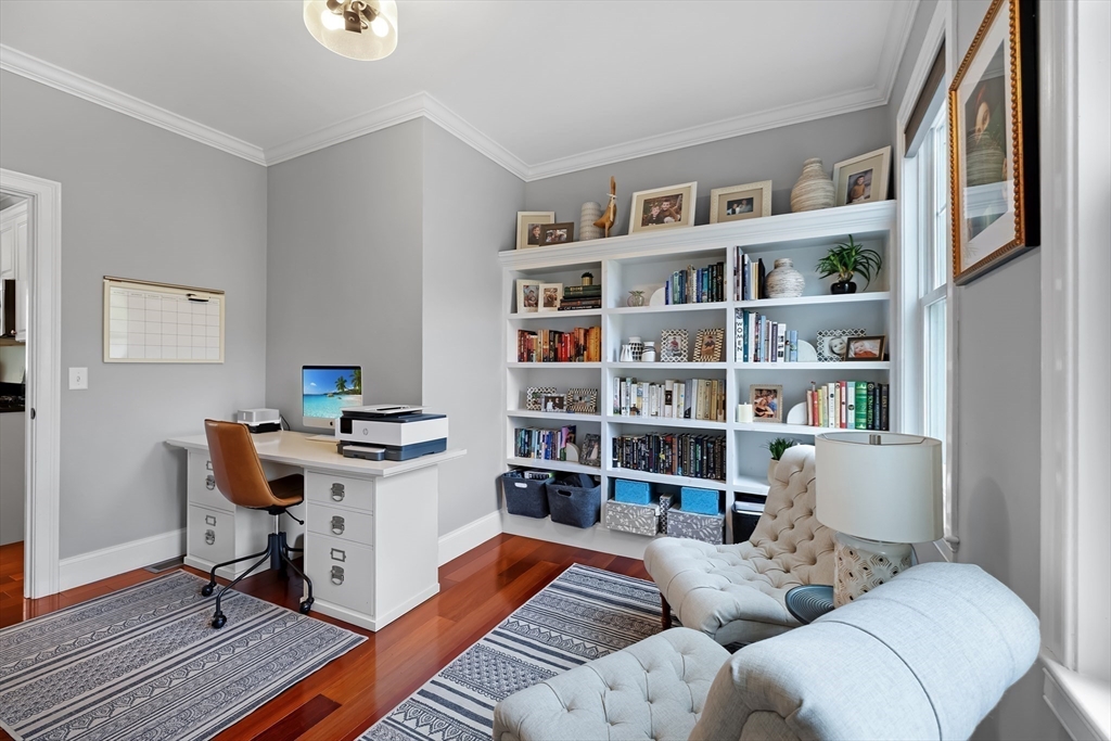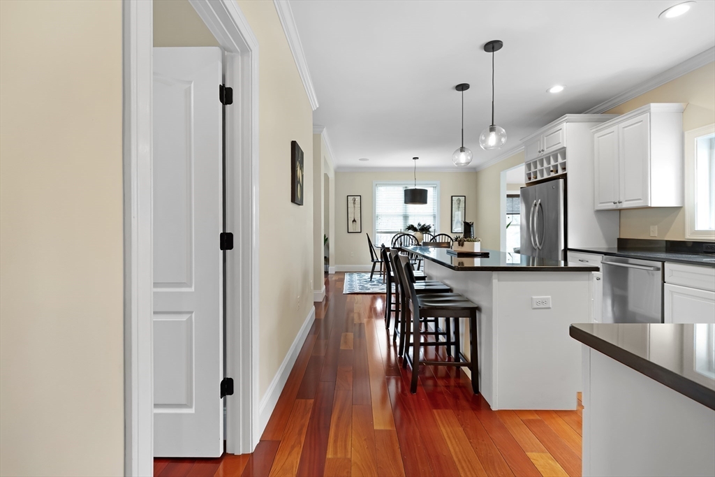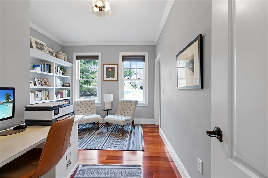 This is the one you’ve been waiting for! Stunning 2,848 sq ft Colonial, perfectly situated at the end of a cul-de-sac, offers the ideal blend of comfort, elegance, and functionality. Featuring 4 spacious bedrooms and 2.5 baths, this home is designed to fit today’s lifestyle. Step inside to find gleaming Brazilian cherry hardwood floors and beautiful crown molding, complemented by impressive 9-foot ceilings that create a bright, open feel. The fire-placed family room is perfect for cozy nights, while the first-floor office with custom built-ins provides an ideal work-from-home space. Upstairs, the spacious primary suite offers its own private full bathroom, creating a relaxing retreat at the end of the day. You’ll also enjoy the convenience of a second-floor laundry room and a versatile bonus space—perfect as a second family room, playroom, or even a fifth bedroom to suit your needs. Outside, your private backyard oasis awaits with a beautifully maintained 10-year-old in-ground pool.