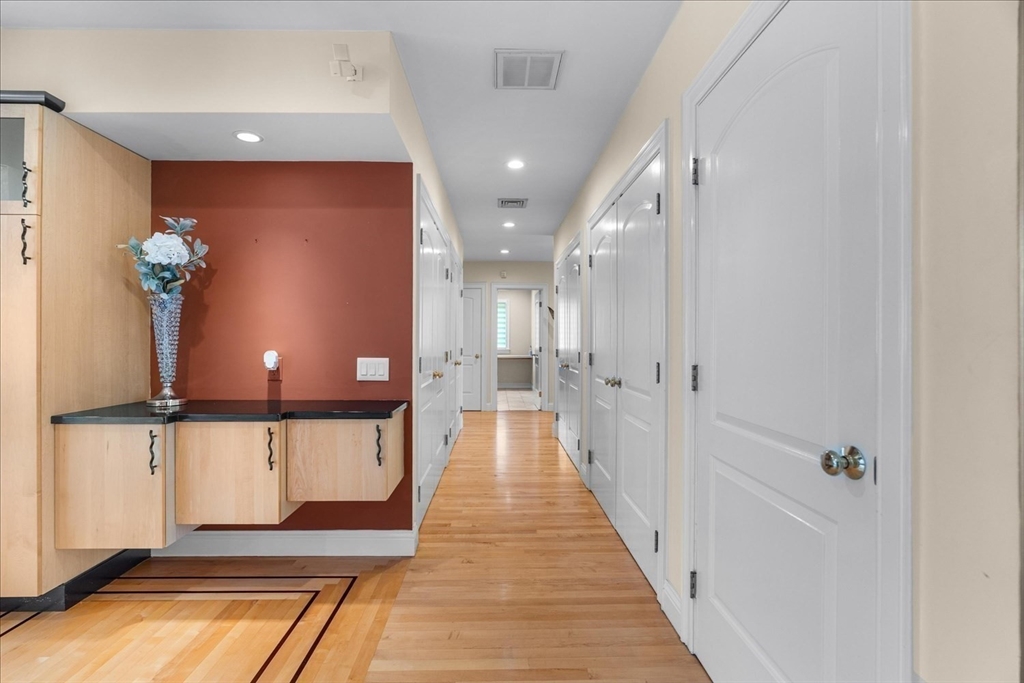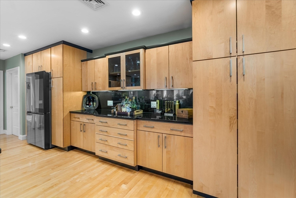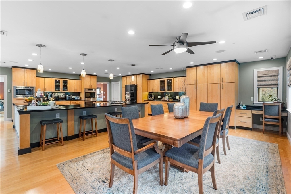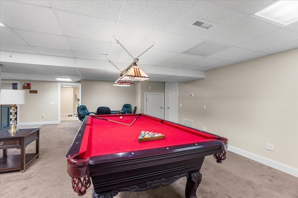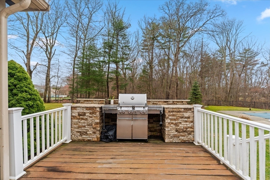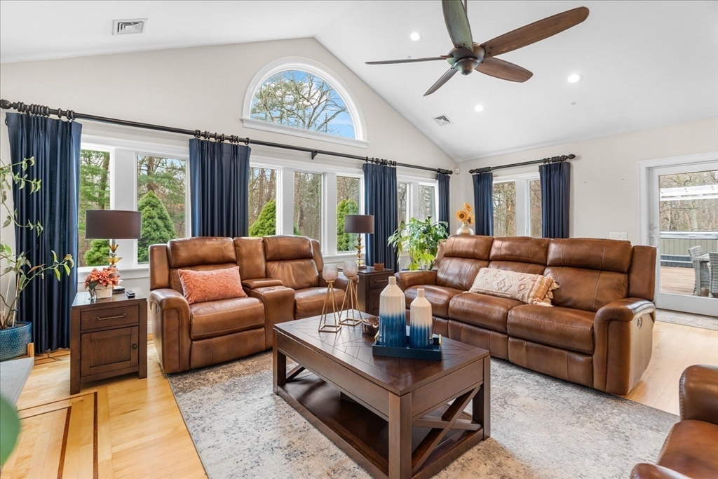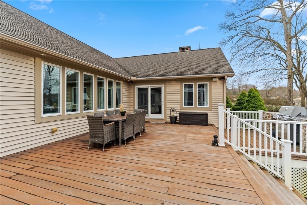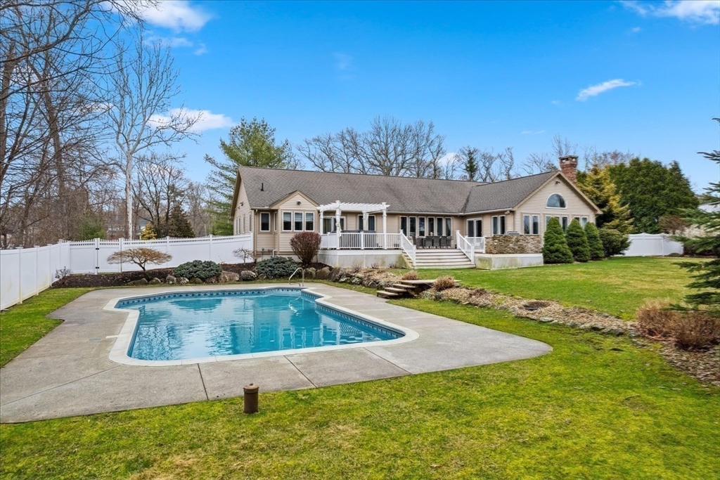 Luxury contemporary ranch in desirable Seekonk featuring a sun-filled open floor plan with gleaming hardwood floors and exceptional craftsmanship throughout. The stunning living room offers abundant natural light, custom built-ins, and premium surround sound. Designer kitchen showcases an oversized U-shaped granite island, stainless steel appliances, breakfast bar, and custom maple cabinetry—perfect for entertaining guests. Spacious primary suite features a spa-like bath with Jacuzzi tub and steam shower. Two additional bedrooms, full guest bath, and convenient laundry complete the main level. Finished lower level offers a game room, wet bar, gym, and half bath for added living space. Resort-style outdoor living includes oversized deck, hot tub, outdoor kitchen, and heated in-ground pool with patio surround. Professionally landscaped yard with irrigation system and attached three-car garage. Entertainer’s dream home!