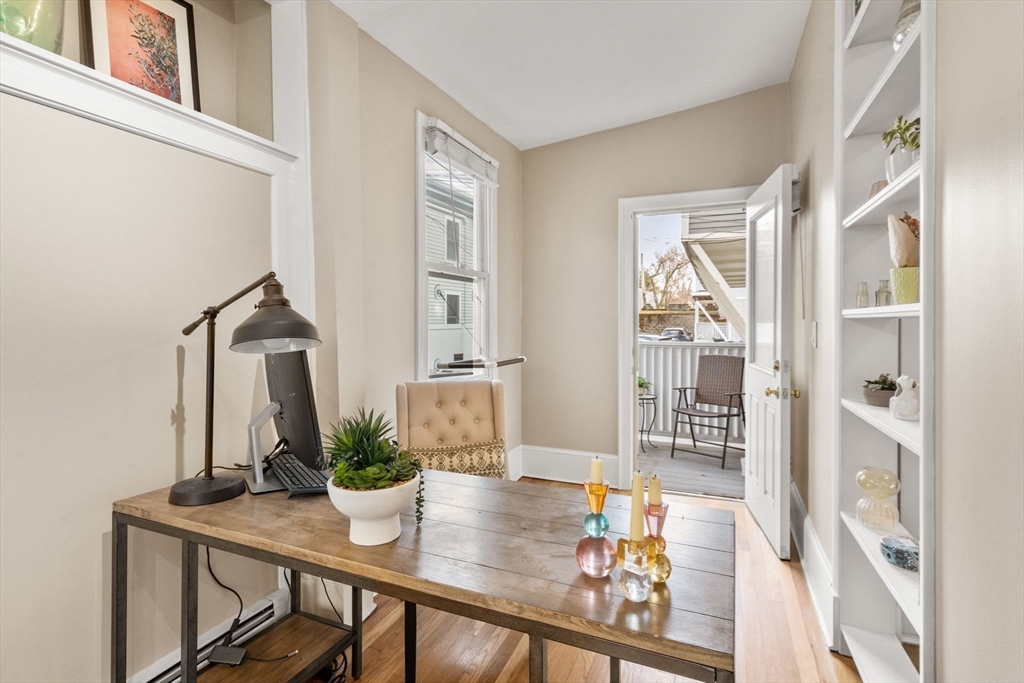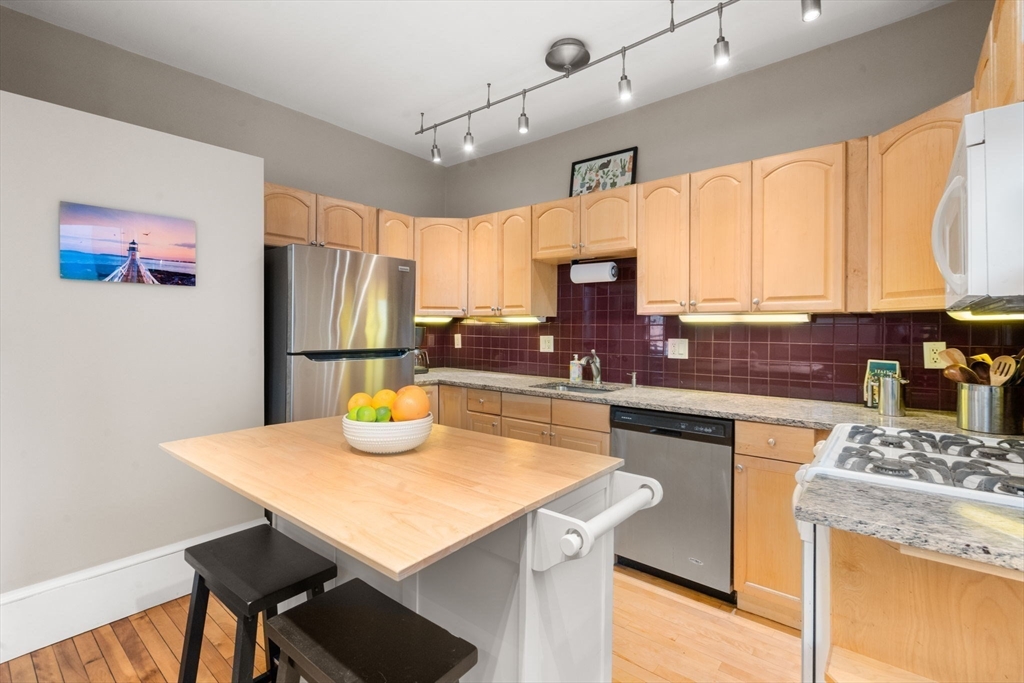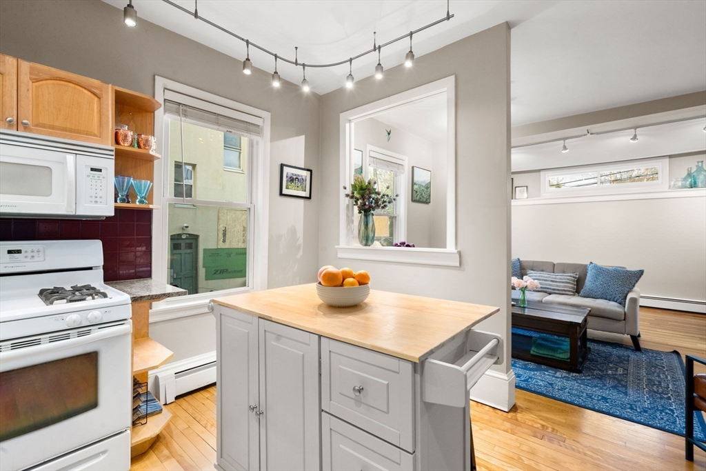 Excellent opportunity to own in the highly coveted Harvard University area! This Mid-Cambridge residence showcases high ceilings, hardwood floors, stylish track lighting, along with a private balcony for outdoor enjoyment. The thoughtfully designed open floor plan features two well-proportioned bedrooms, a full bath, & a seamless living/dining area complemented by an eat-in kitchen & a convenient study nook ideal for today’s flexible lifestyle. Additional highlights include rare two-car parking (one garage & one paved space), lockable basement storage, & in-building laundry for everyday ease. Enjoy exceptional proximity to neighborhood favorites such as Whole Foods, Broadsheet Coffee Roasters, Savenor’s, Dali & much more. Ideally located just a ½ mile from Harvard Square and ¾ mile to Union Square, this home boasts an outstanding Walk Score of 91 & a perfect Bike Score of 100.